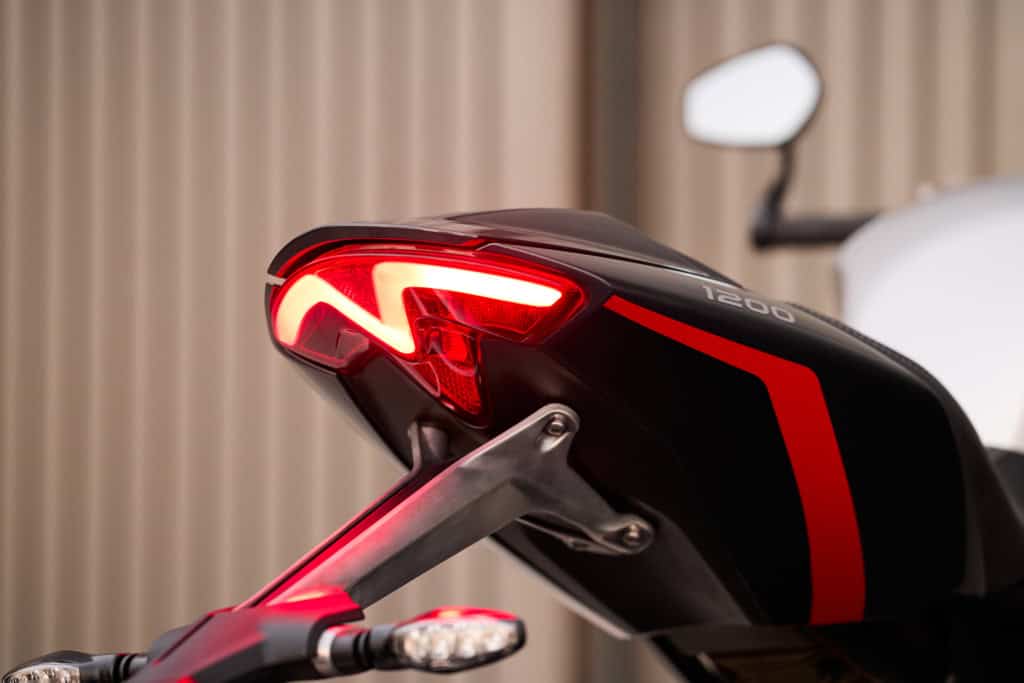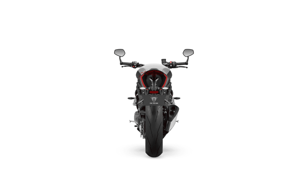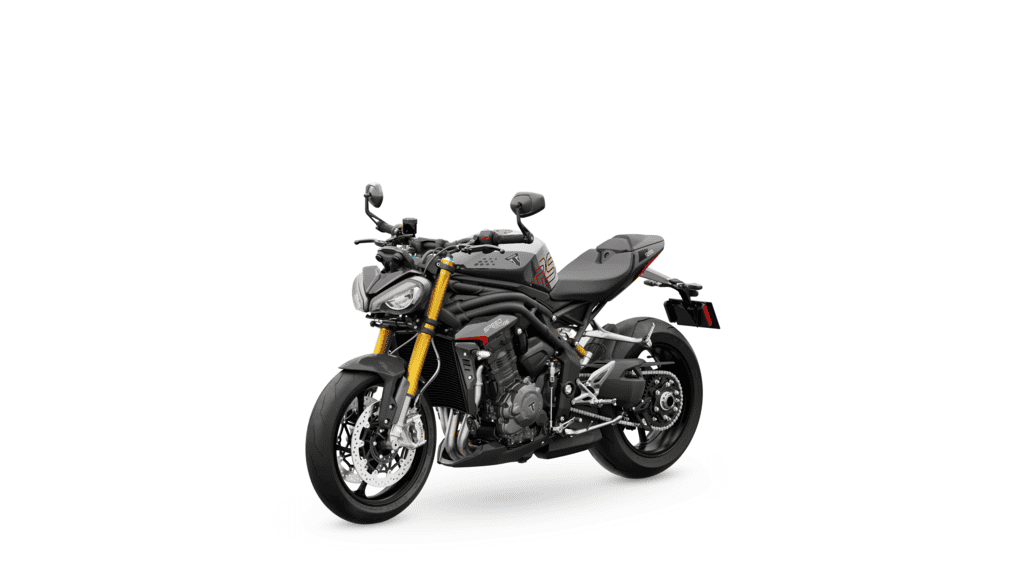 De driecilinder-lijnmotor van de Speed Triple 1200 RS behoudt zijn 1.160 cc cilinderhoud en is uiteraard Euro 5+-proof. Maar er is meer. Triumph heeft ook de krukas fijner uitgebalanceerd, geoptimaliseerde drijfstangen toegepast en de uitlaatgassen worden door een gemodificeerd uitlaatsysteem met verbeterde massaconcentratie geleid. Door dit alles steeg het topvermogen tot 183 pk bij 10.750 tpm, terwijl het koppel steeg tot 128 Nm bij 8.750 tpm. Voor beide een plus van 3 dus. Om hier optimaal van te genieten, zijn er 5 rijmodi beschikbaar (Rain, Road, Sport, Track en Rider) en kunnen het remkoppel van de motor en andere hulpsystemen ook individueel worden aangepast. Ook de nieuwe wheeliecontrol maakt aanpassingen op maat mogelijk, terwijl Brake Slide Control automatisch wordt geactiveerd in de Track-modus.