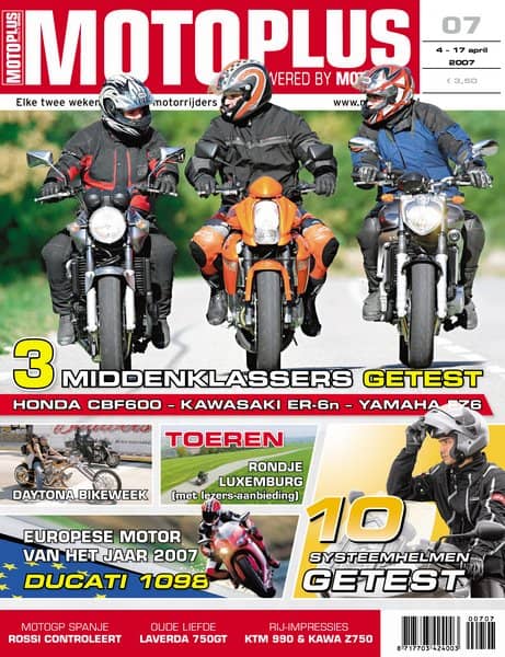 En de derde? Misschien juist door zijn tegenstellingen. Als deze middenklassers Galliërs geweest zouden zijn, dan hadden ze allemaal ‘Xtavoornix’ kunnen heten. Ze kwamen, ze zagen, maar er overwon er maar één: de Kawasaki ER-6n. En dat is dan ook meteen de eerste overwinning van de ER. MOTOPLUS CONCLUSIE 1 Kawasaki ER-6n De winnaar pakt punten door de bullige krachtsontplooiing van zijn moderne, zuinige tweecilinder. Het rijwielgedeelte is wat minder, net als de uitrusting en de afwerking. 2 Honda CBF600 De ABS-pionier maakt zich breed. De beste remmen, variabele ergonomie en het grootst mogelijke gevoel van geborgenheid. Dat zijn dingen die de CBF tot een heel bijzondere motor maken. Wat er dan aan mankeert? Hij zou minder moeten wegen en injectie moeten hebben.