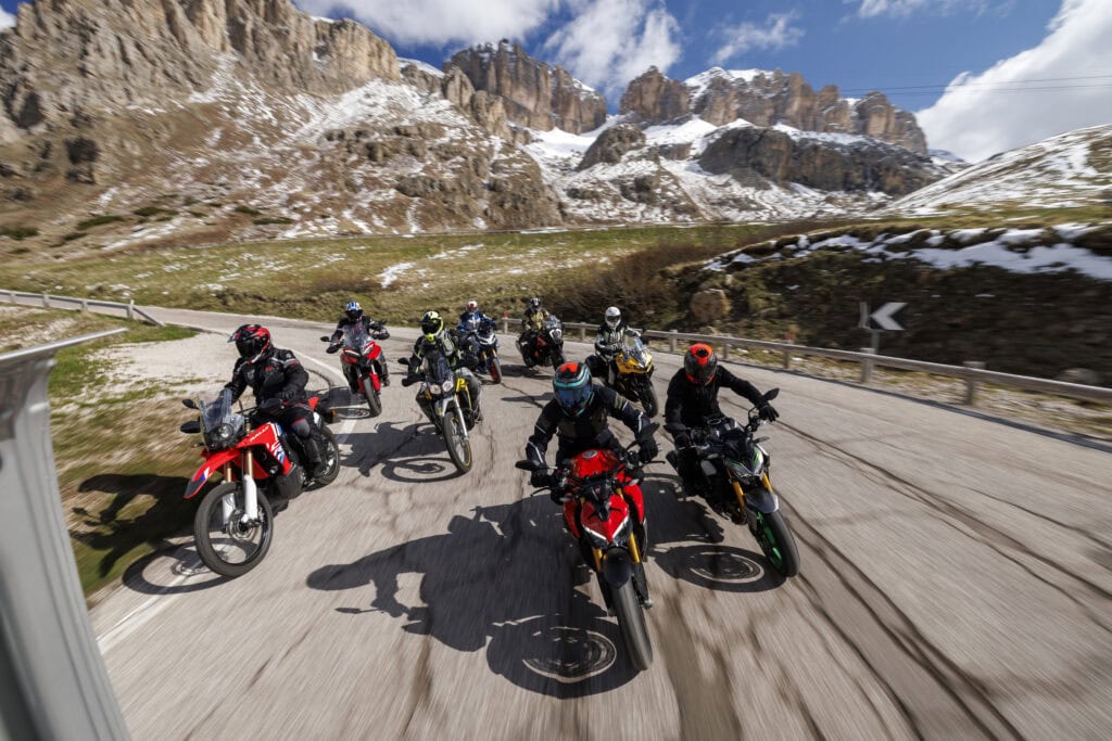 Met de editie van dit jaar vormen de Dolomieten voor de achtste keer het decor van onze jaarlijkse Alpenmasters-vergelijkingstest. Of beter gezegd: nergens anders in de Alpen heeft de grootste vergelijkingstest van het jaar vaker plaatsgevonden dan rond de markante bergtoppen ten oosten van het Eisacktal. En daar zijn goede redenen voor. Niet alleen biedt de combinatie van de bijzondere rotsmassieven en de groene dalen een uniek uitzicht, ook kunnen de charmes van Alpenwegen nergens in zo’n compacte vorm worden ervaren als in de Dolomieten. Neem bijvoorbeeld de Sellaronda-route, waarvan we in de meeste edities van de Alpenmasters gebruik maken: de route telt ‘maar’ 98 kilometer, maar verbindt liefst vijf bergpassen. Uiteindelijk is dat de essentie van motorrijden.