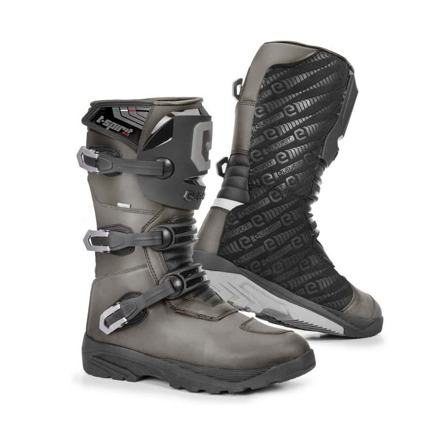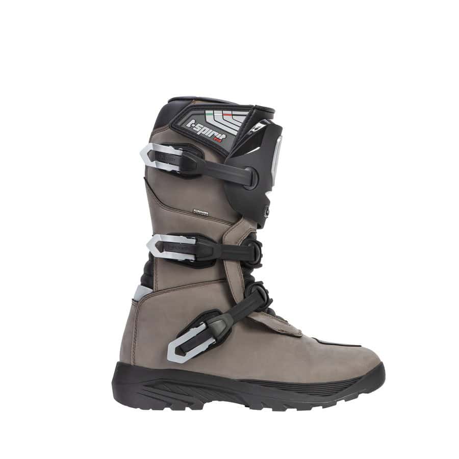 Deze nieuwe T Spirit Evo WP is dan een goede kandidaat. De leren laars houdt het midden tussen een stevige offroad en comfortabele toerlaars. Zo is hij voorzien van drie verstelbare gespen voor een nauwsluitende pasvorm, zitten er stevige protectoren bij scheenbeen, enkel, tenen en hiel, en biedt de lekker grove ‘double compound’ zool te allen tijde veel grip op de voetsteunen. Een waterplasje of rivierdoorwading hoef je bovendien ook niet te vrezen, de T Spirit is namelijk uitgerust met een waterdicht membraan.