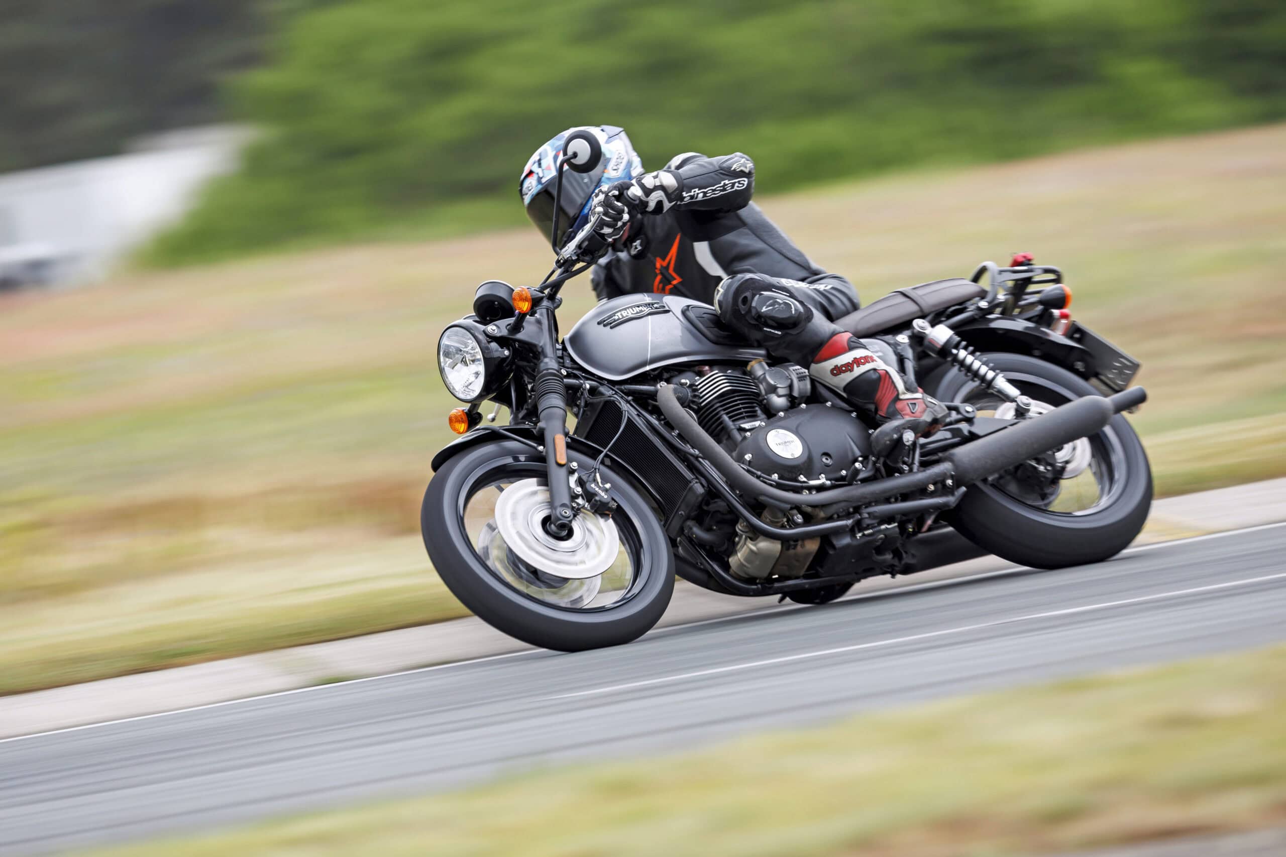 Hier gooit Michelin hoge ogen met de Pilot Street Radial en kaapt de zege weg voor de op de tweede plaats eindigende Bridgestone BT-46. Dat is ongetwijfeld te danken aan de radiaalconstructie; simpel gezegd zijn radiaalbanden stabieler dan diagonaalbanden (de overige vier bandenmodellen) en gedragen zich daardoor berekenbaarder en ze geven de rijder een duidelijker gevoel. Een duidelijker gevoel geeft vertrouwen en vertrouwen geeft veiligheid. Bij de geteste banden voor retromotoren wordt deze argumentatie nog eens bevestigd. Hier zit ook een gemengde bandenset tussen: bij de Pirelli is de smalle voorband diagonaal opgebouwd en de achterband radiaal. De zege gaat echter duidelijk naar de Continental- combinatie van RoadAttack 3CR voor en RoadAttack 4 achter. Deze Conti-combi geeft de Triumph werkelijk vleugels en doet hem gevoelsmatig ettelijke kilo’s verliezen. Ook de Conti’s geven een duidelijke feedback, je voelt precies hoe het wegdek eraan toe is. Dat is voor alle rijders fijn, ongeacht hun ervaring of rijtalent. Als voorbeeld kijken we naar de bochtenstabiliteit: terwijl de Conti’s zich moeiteloos plat laten leggen en dan stevig en zeker in de bocht liggen (19 punten), wringen en bewegen de Dunlop TT100 GP’s in de bocht duidelijk meer en liggen daardoor onrustiger (14 punten). Subjectief geven de Conti’s dus een prettig rijgevoel, terwijl met name minder ervaren rijders zich op de Dunlops minder zeker zullen voelen.