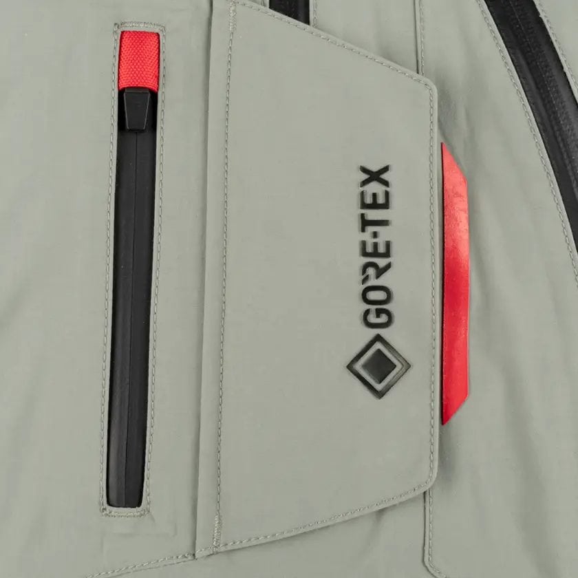 Het Austral-jack is van aardig wat handigheidjes voorzien, een offset-rits uit het midden bijvoorbeeld of de forse zak aan de voorzijde. Daarnaast is het jack, en ook de broek uiteraard, voorzien van een waterdicht en ademend Gore-Tex-laminaat aan de buitenzijde. Meer comfort is er in de vorm van de Sheltech-voering, die op warmere dagen eenvoudig te verwijderen is. Het Pulse Air System zorgt ervoor dat er voldoende verkoelende rijwind door de jas kan stromen. Ook heeft de jas verschillende stelmogelijkheden en is de capuchon afritsbaar.