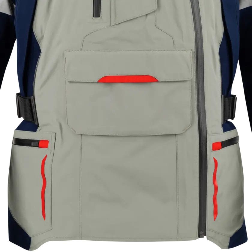 Gebruiksgemak staat bij de Austral hoog in het vaandel. Dit blijkt wel uit de vier buitenzakken, de zak aan de voorzijde en een vak op de onderarm. Daarnaast biedt de Austral twee binnenzakken en een aparte zak voor de portefeuille. Ook is de Austral motorjas eenvoudig vast te ritsen aan de bijpassende motorbroek.