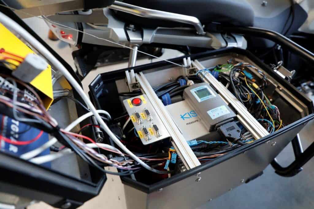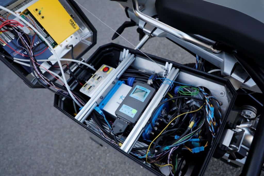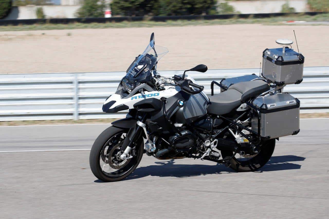 Waarbij men denkt dat de technieken van het autonoom rijden in de toekomst wellicht kunnen helpen als veiligheidssysteem, om het motorrijden dus veiliger te maken. Door je bijvoorbeeld te behoeden voor een botsing of een schuivertje. Of door in te grijpen als het wegdek plotseling glad wordt of als een andere verkeersdeelnemer jou over het hoofd ziet. In bijgaande filmpjes zie je de R1200GS Adventure autonoom rijden. De elektronica die daar voor nodig is, past op dit moment trouwens amper in de drie aluminium koffers!