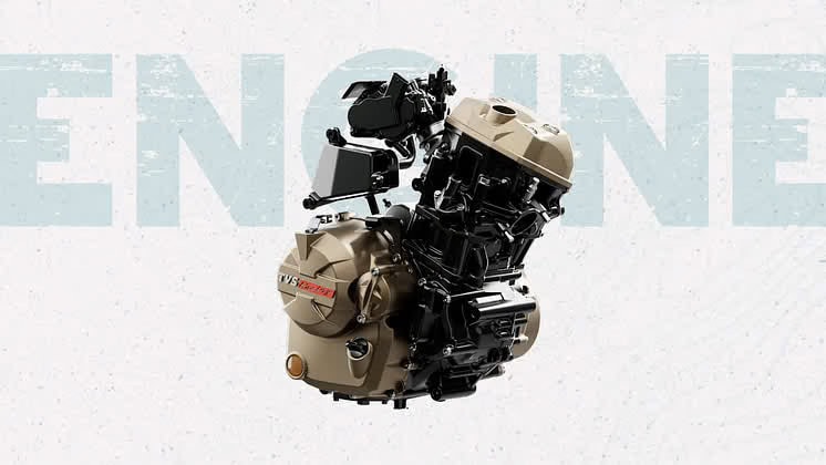 Het motorblok TVS RT-XD4 is watergekoeld met vier kleppen, dubbele bovenliggende nokkenassen en heeft benzine-injectie. De 299 cc eenpitter biedt 36 pk bij 9.000 tpm en 25,5 Nm bij 7.000 tpm. De elektrische gashendel stelt vier verschillende rijmodi beschikbaar: “Urban”, “Tour”, ‘Rally’ en “Rain”.