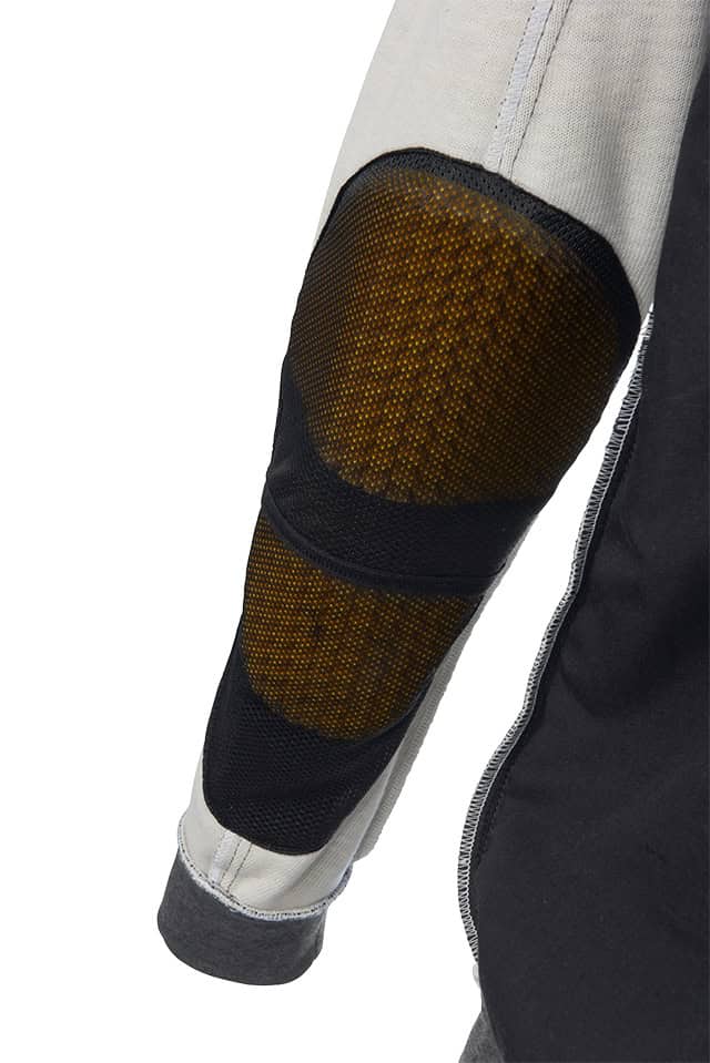 Maar wat er aan de buitenzijde uitziet als modieuze vrijetijdskleding, is aan de binnenzijde volledig versterkt met Armalith. Dit materiaal oogt als katoen, voelt aan als katoen, maar is extreem scheur- en slijtvast. Dat komt volgens de fabrikant door de toevoeging van 31% polyethyleen aan de stof. Daaronder zitten level 2-protectoren van Sas-Tec op de schouders en ellebogen, een rugprotector is optioneel. Daarnaast is de hoodie voorzien van een korte verbindingsrits met een broek en veiligheidsnaden op de kwetsbare plekken.