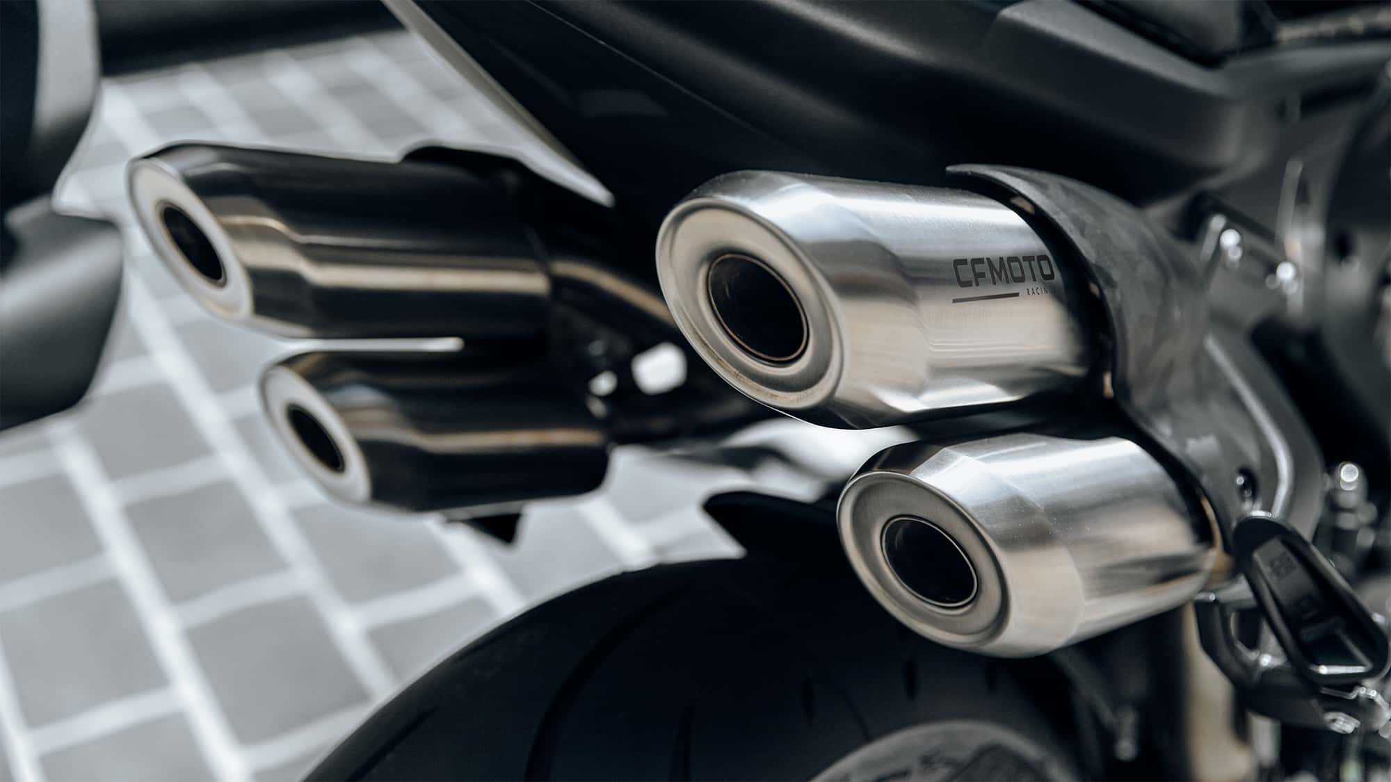 CFMoto lanceerde eerder dit jaar de sportieve 675 SR-R met 90 pk sterke driecilindermotor, maar de Chinese fabrikant schakelt meteen door met de nieuwe 750 SR-S, voorzien van een 749cc metende en 111 pk sterke viercilinder met een heel opvallend 4-in-4 uitlaatsysteem en een enkelzijdige swingarm.