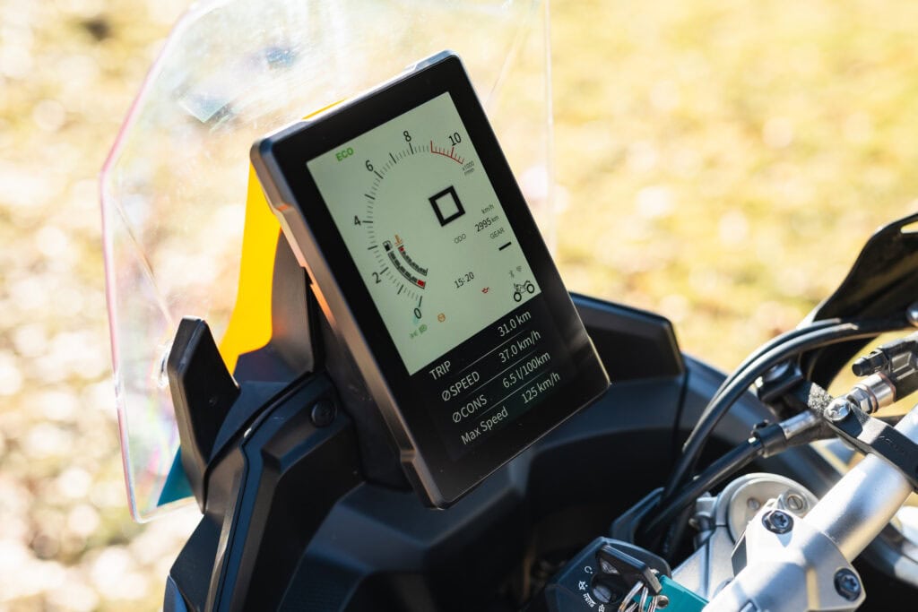 De ergonomie en windbescherming van de Kove zijn prima voor elkaar. De knoppen functioneren goed, maar ogen wat goedkoop. Met die knoppen zijn het ABS en tractiecontrole in- of uit te schakelen en daarbij valt het op dat alles prima op het display wordt weergegeven en dat de menustructuur helder is.