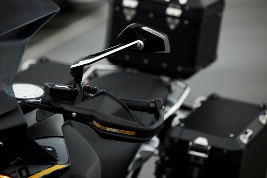 Nagenoeg alle beschikbare opties en accessoires zitten er op. Zo wordt de Ultimate Edition standaard geleverd met het Touring pakket met onder meer navigatievoorbereiding en cruise control, evenals het Comfort pakket met verchroomde uitlaatbochten, design uitlaatdemper, bandenspanningscontrole, handvatverwarming en Keyless Ride. Ook het Dynamic pakket zit er op en dat omvat ook de Rijmodi Pro functie met Dynamic Engine Brake Control om de stabiliteit bij afremmen op de motor te verhogen en een slippend of stuiterend achterwiel bij hard remmen en tegelijk terugschakelen te voorkomen . Het Dynamic pakket biedt verder de Schakelassistent Pro voor schakelen zonder gebruik van de koppelingshendel, terwijl Dynamic ESA automatisch de demping en veervoorspanning aanpast aan de rijmodi Road, Dynamic en Enduro.