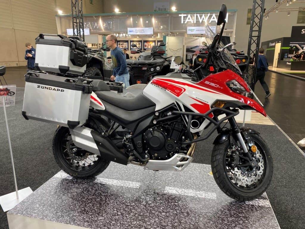 De Zündapp roept bij velen ongetwijfeld nog steeds herinneringen aan lang vervlogen brommertijden op, maar het merk is nog springlevend en ressorteert tegenwoordig onder Chinese vleugels. Tot dusverre produceerde het vooral bromfietsen en lichte motoren, maar op de Intermot in Keulen was daar opeens de ZXA 500, een adventure met een wel heel nadrukkelijke knipoog naar het lijnenspel van de Ducati Multistrada.