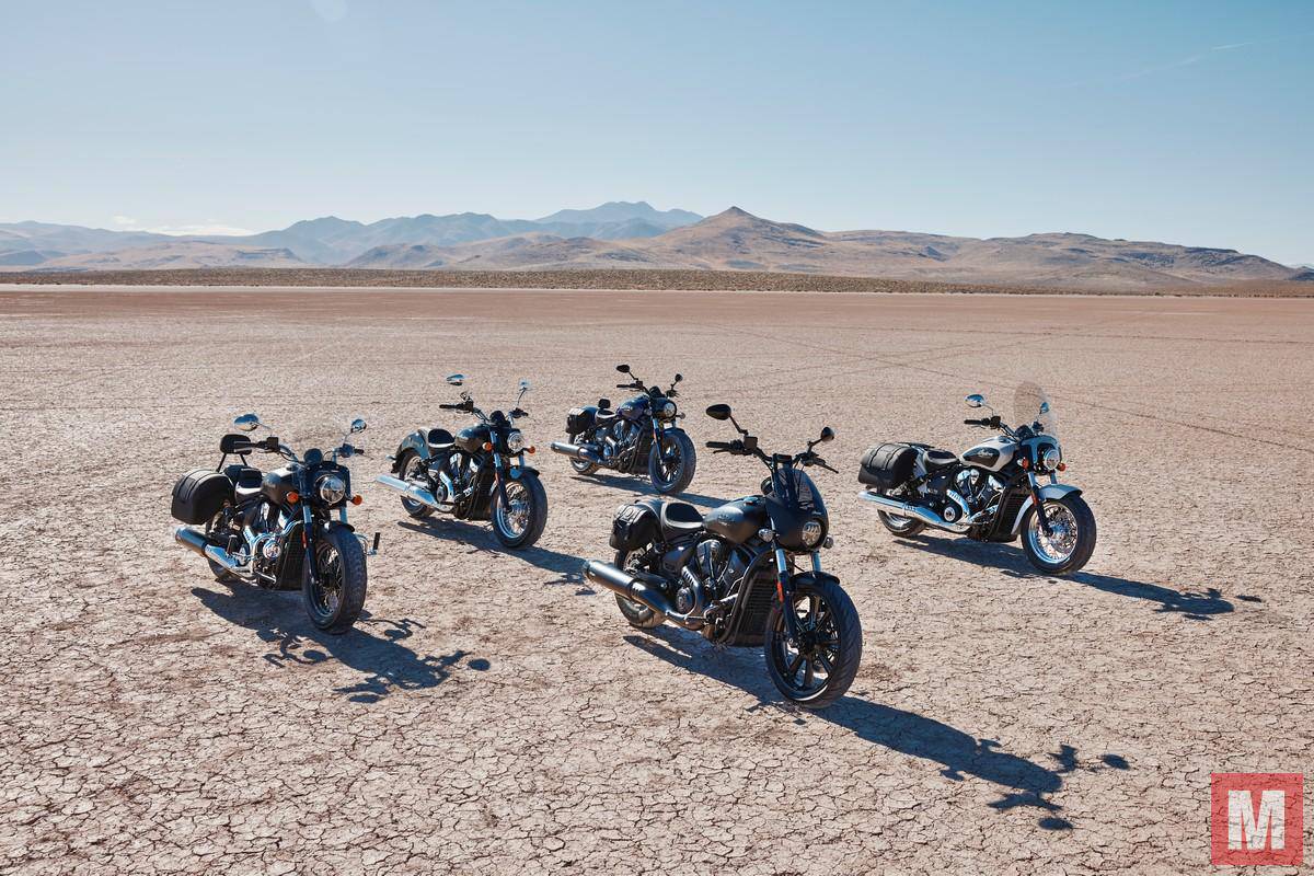 Twee volle rijdagen trekt Indian maar liefst uit voor de introductie van de nieuwe Scout en dat is ook wel nodig. De sportieve cruiser komt er namelijk meteen in vijf verschillende uitvoeringen: de Classic, Bobber, Sport Scout (die de huidige Roque vervangt), Super Scout en Scout 101. Allemaal delen ze in de basis hetzelfde frame, dat nu uit staal is opgetrokken en niet meer uit aluminium, en hetzelfde, tot SpeedPlus gedoopte blok. In de basis het blok van de afzwaaiende Scout, de vloeistofgekoelde 60° V-twin kreeg echter een hogere compressieverhouding en een vijf millimeter grotere boring (nu 104 x 73,6 mm) waardoor de cilinderinhoud groeit van 1.133 naar 1.250 cc.