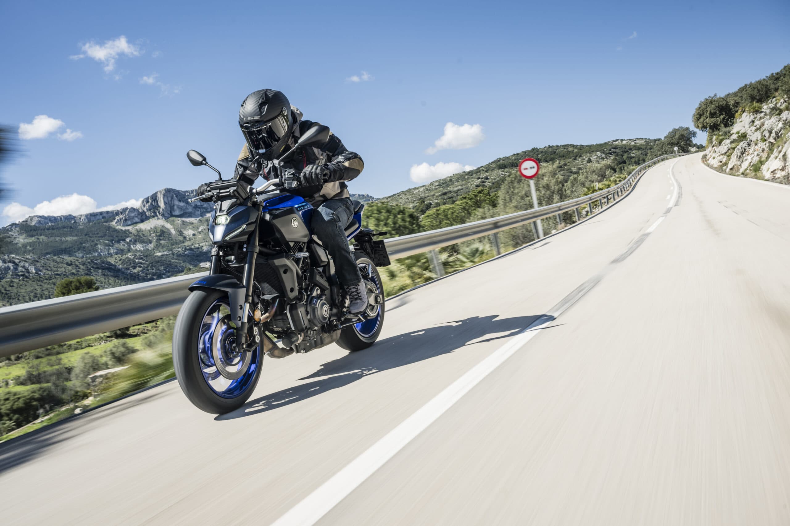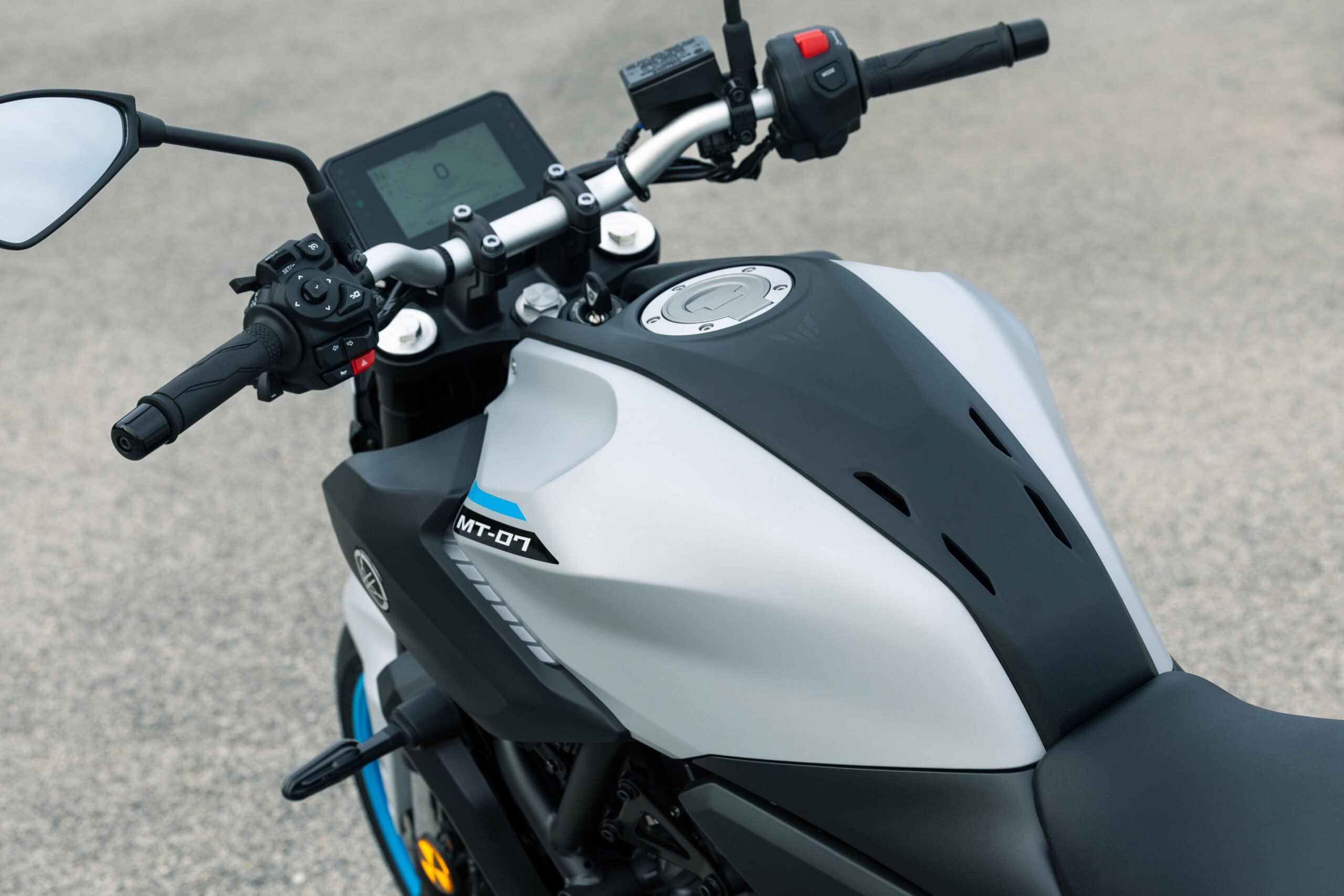 Daar was geen tekentafel-nieuwe MT-07 voor nodig, maar wel een uitvoering met een paar heel gerichte modificaties. Opgestrakt neusje in lijn met de MT-09 bijvoorbeeld, radiaal gemonteerde remklauwen voor, een nieuwe upside-down voorvork, een aangepaste achterschokdemper met instelbare veervoorspanning en uitgaande demping, gemodificeerde wielen, een iets stijver uitgevoerd frame en swingarm, maar het voornaamste nieuwtje is wel het feit dat de MT-07 nu voor het eerst is voorzien van ride-by-wire, waaraan nu verschillende rijmodi en ook tractiecontrole (uitschakelbaar) zijn gekoppeld. Gekozen modus en alle andere relevante rij-info lees je nu af van het van de MT-09 afkomstige 5 inch TFT-scherm, compleet met verschillende connectiviteitsmogelijkheden.