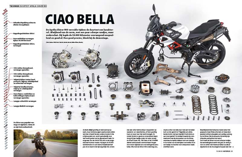Conclusie: de naakte ‘middenklasse’, die gaandeweg in cilinderinhoud omhoog kruipt, heeft er twee fraaie deelnemers bij gekregen. De Shiver is een concurrent van een hele reeks nakeds in de klasse van 750 tot 950 cc (van Suzuki GSX-S750 tot Kawasaki Z900), de Dorsoduro is een duidelijke tegenhanger van de Ducati Hypermotard. In beide gevallen hebben de Aprilia’s met hun 95 pk wel een lager topvermogen dan hun concurrenten, maar in deze categorieën is dat geen halszaak. In hun prijsklasse onderscheiden de Aprilia’s zich door andere dingen, zoals de prachtige bouw, fraaie uitrusting en hun geheel eigen karakter. Met wat draaien aan de vering sturen ze ook nog eens mooi, waarbij het met een setje modernere banden alleen nog maar beter kan worden. Zeker de Shiver 900 is met zijn € 9.694,- echt een scherpe aanbieding, maar zelfs de duurdere Dorsoduro is met zijn € 10.994,- nog altijd goedkoper dan hij aandoet.