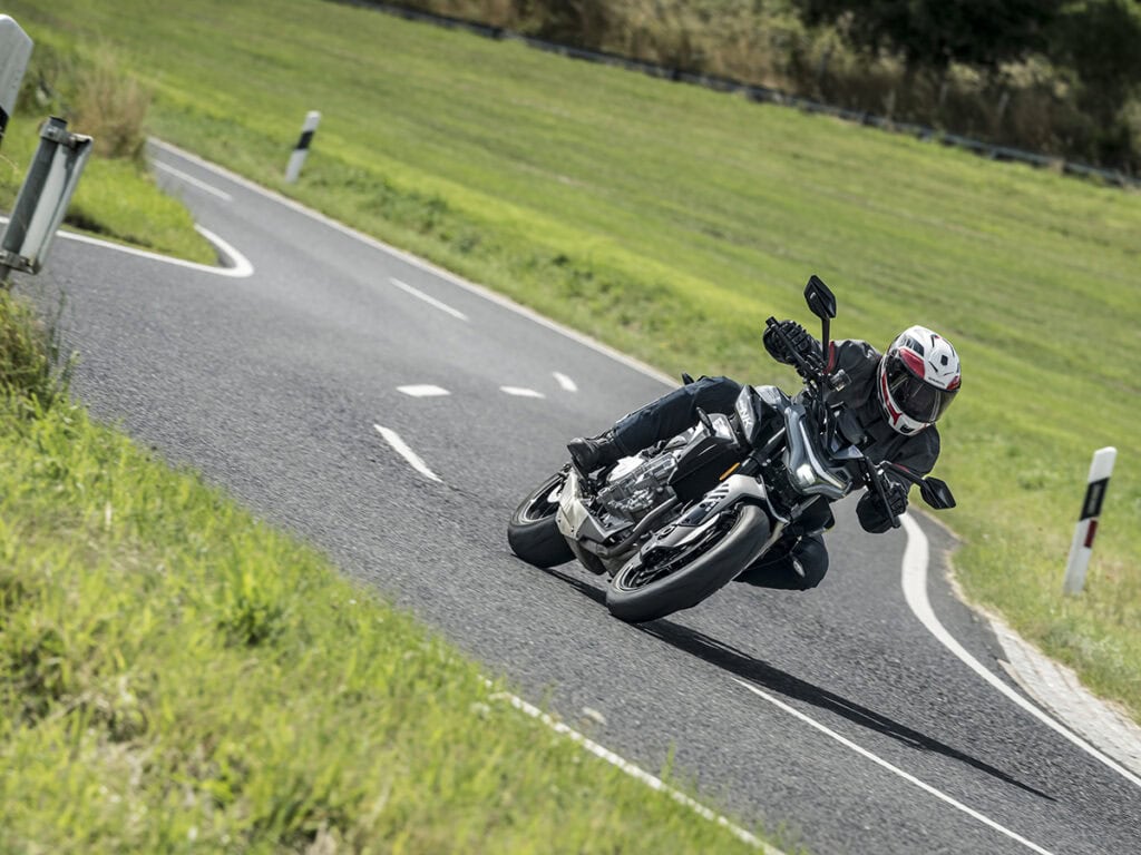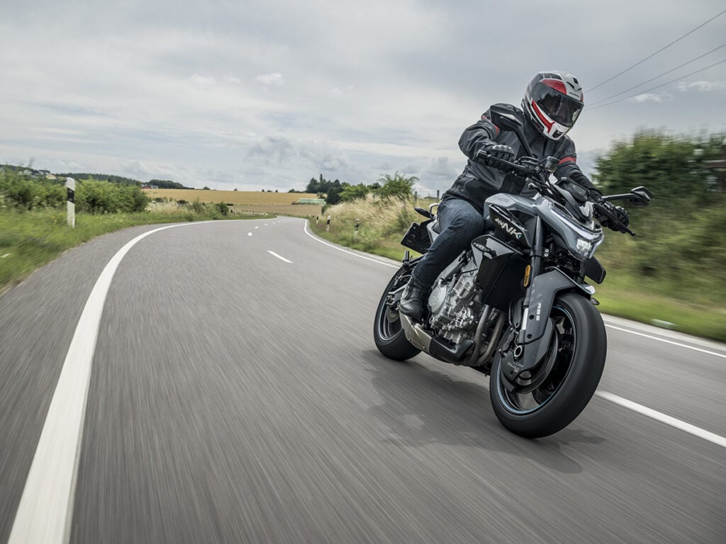 Rijwielgedeelte en vering zijn daar ook prima op ingericht. De relatief korte wielbasis (1.400 mm) en korte naloop (94 mm) in combinatie met een relatief vlakke balhoofdhoek (63,5°) belooft op papier een goede portie wendbaarheid en rechtuitstabiliteit, Een belofte die de NK in de praktijk nakomt. Kort, langzaam draaiwerk is appeltje-eitje, de 675 laat zich uiterst handtam door de krapste haarspeldbochten dirigeren, ook dankzij de ruime stuuruitslag. Dezelfde lichtvoetigheid legt de driecilinder ook in snelle en middelsnelle bochten aan de dag, zonder nerveus te zijn. Insturen, lijn volgen en bij de apex het gas er weer op, het gaat allemaal heel makkelijk en voorspelbaar. Dat geeft toch wel een hoop vertrouwen. Overigens is het wel zaak om dan niet bij te remmen, want dan neigt de NK toch wel flink tot oprichten. Enerzijds omdat de initiële bite van de voorrem best gretig is, maar waarschijnlijk hebben de banden er ook wel een aandeel in. Die zijn eenmaal warm zeker niet slecht, maar voor het rijden van echt diepe hellingshoeken bieden ze toch net wat weinig feedback/vertrouwen.