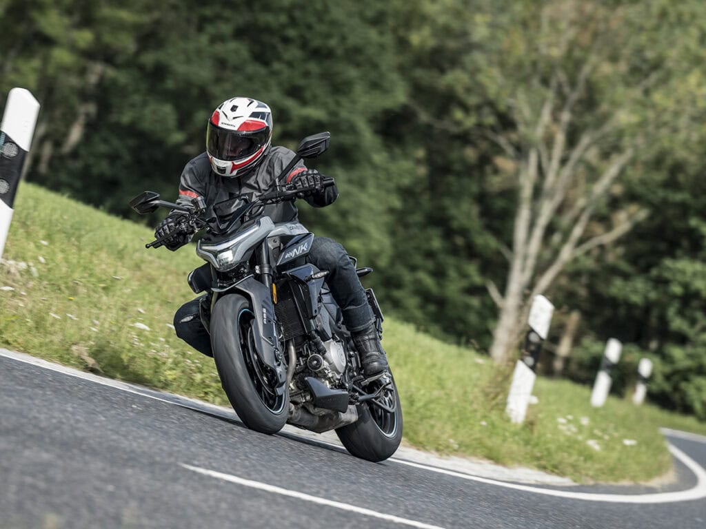 Een kleine rimpel in een vijver met een verder spiegelglad wateroppervlak. Het speelse gemak waarmee de CFMoto zich laat rijden, is domweg verslavend. Inleggen, afdraaien, gas erop, tik tegen de uiterst soepele quickshifter en weer ankeren voor de volgende bocht. Dat laatste is een vingeroefening die ‘ie ook goed beheerst trouwens. Het gretige aanpakken vraagt even gewenning, maar vertragen doet de machine als een wilde wanneer gewenst, zonder dat het ABS hinderlijk ingrijpt. Ook niet onbelangrijk…