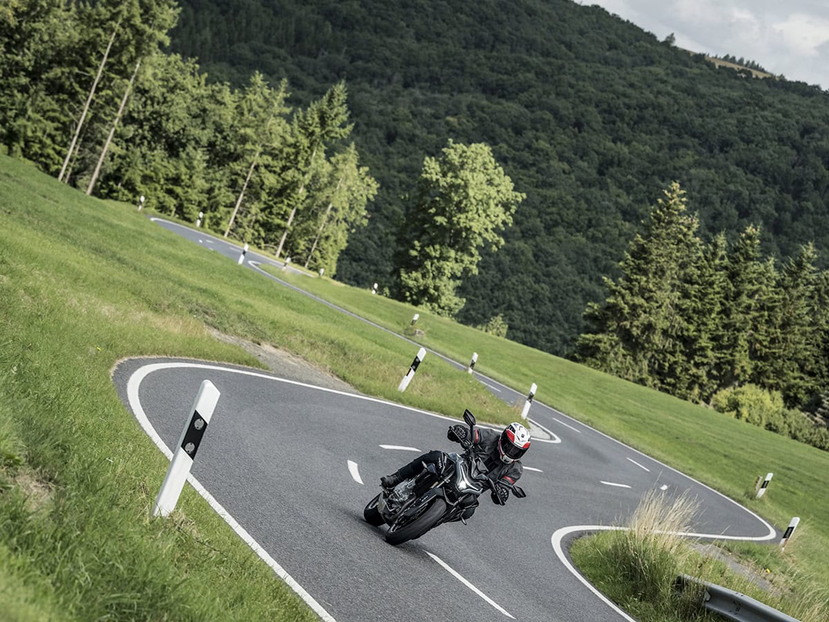 De prachtige Vallei van de Süre vormt de uitvalsbasis voor deze driepitter-ontdekkingstocht en eenmaal in het zadel kan het ook vrij snel op weg. Veel instelwerk is er zoals gezegd niet: aan verschillende rijmodi doet de 675 niet, dus is het eigenlijk enkel een kwestie van de hendels en eventueel het niveau van de tractiecontrole aanpassen en klaar is Kees.