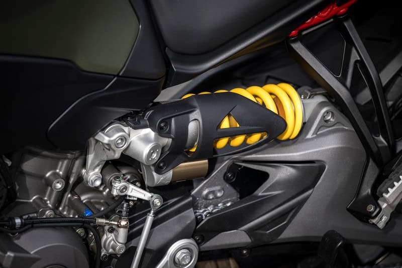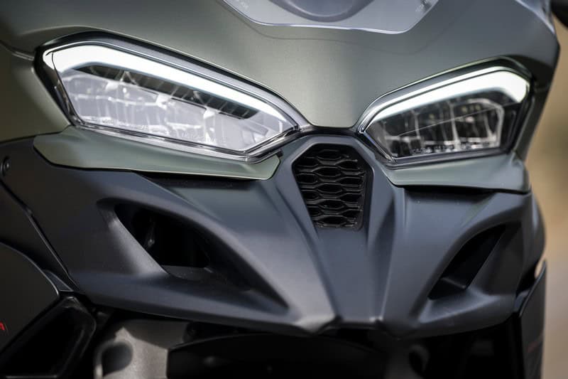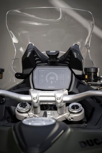 Waarom de V2 S een Enduro-rijmodus heeft? Geen idee, deze Multistrada is gewoon een crossover. Dat betekent ook direct flinke concurrentie. Triumph heeft net de Tiger Sport 800 gelanceerd en met € 13.695,- is die flink goedkoper. Of wat te denken van de rijker uitgeruste – en met € 20.999,- toch goedkopere – Yamaha Tracer 9GT+? Maar sommige mensen willen nu eenmaal een Ducati en bekommeren zich totaal niet om Japanners en Britten. Ducati probeert met de vormgeving in te spelen op die warme Italiaanse gevoelens. Dus verwijst de koplamp naar een 916 en een achterlicht naar het kontje van een Panigale. Het uiterlijk is verzorgd met het ranke neusje, de slanke uitlaatdemper, de fraaie swingarm en de ingebouwde knipperlichten. Extreem exotisch of afwijkend is het niet, maar je kunt niet elke dag een 916, 851 of Monster uitbrengen.