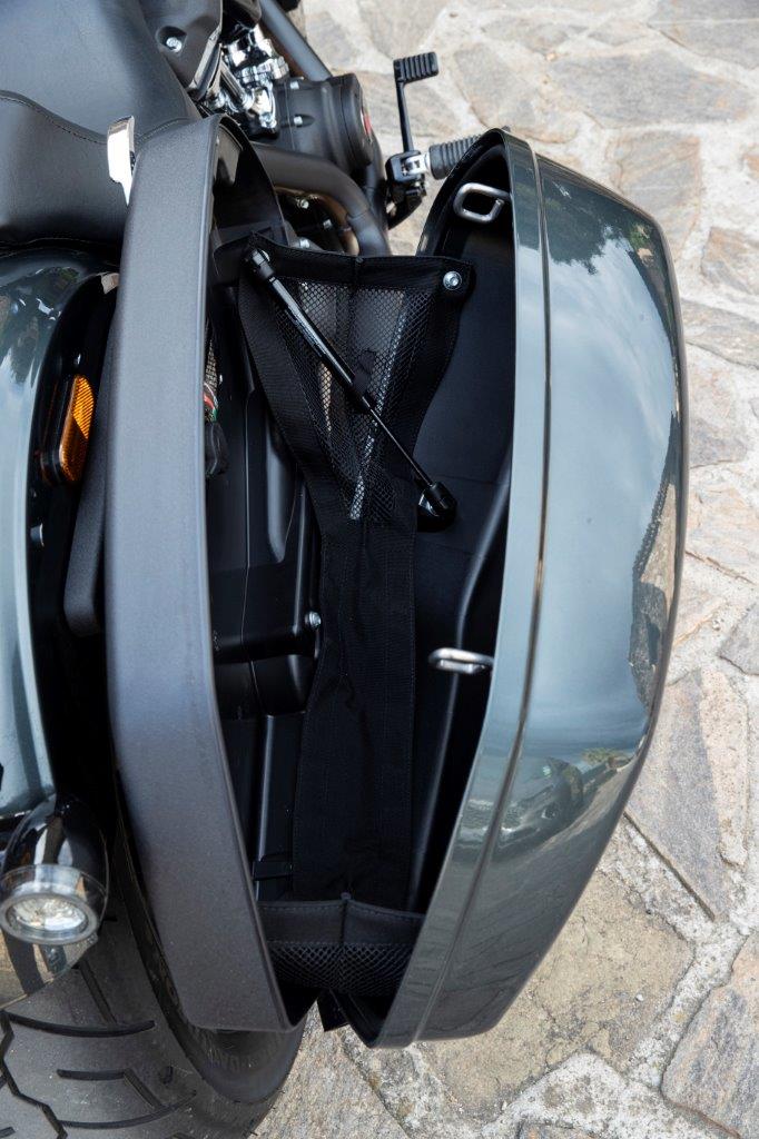En als je de ST zo ziet staan met zijn fraaie FXRT-retro-stroomlijn en zijkoffers heeft ‘ie ook wel iets weg van Harley’s bagger-racers. Achter het ruitje van die tophalf-stroomlijn oogt het en voelt alles vertrouwd in het 715 millimeter hoge zadel, maar de knoppen op beide stuurhelften verraden dat Harley niet klaar was met het blok alleen. Ook qua elektronica en hulpsystemen is er een behoorlijke stap gezet. Zo zijn alle Cruiser/Softail-modellen nu voorzien van drie rijmodi (Rain, Road en Sport), hellingshoekafhankelijk ABS en tractiecontrole, Cornering Enhanced Drag-Torque Slip Control (C-DSCS, remkoppelbegrenzer), cruise control en automatische bandenspanningscontrole. In elk van de drie rijmodi worden een specifieke setting van vermogensafgifte, motorrem, bochten-ABS en bochten-tractiecontrole gecombineerd.
