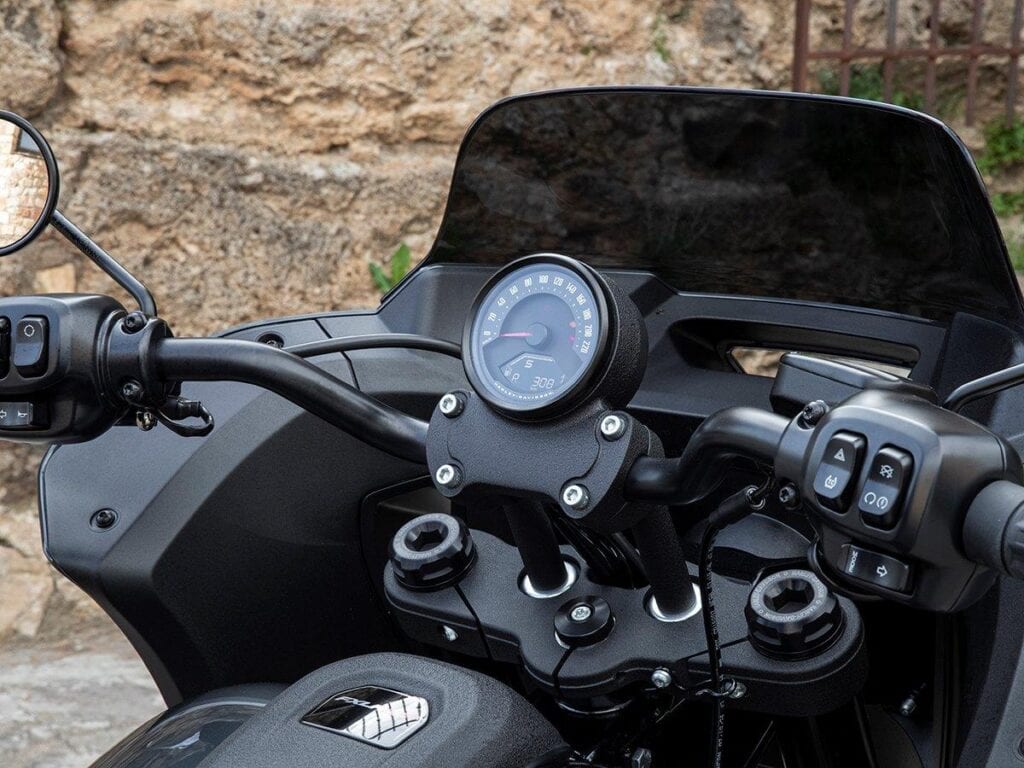 Waar veel in het zadel van Low Riders ergens toch bekend voorkomt van de voorgaande generatie, al blijft de knipperlichtbediening met een schakelaar op beide stuurhelften toch steeds weer wennen, is er ook iets dat aanmerkelijk en voelbaar verbeterd is: de vering. Alhoewel de veerwegen met 130 millimeter voor en 112 al heel behoorlijk zijn voor een Harley-cruiser, en ook identiek aan de 2024-uitvoeringen, is het veercomfort merkbaar beter. Dat is vooral het resultaat van het feit dat Harley-Davidson bij de Cruiser/Softails is overgestapt van progressieve veren naar lineaire veren. Een nadeel van progressieve veren is dat je het eerste stuk veerweg al opoffert, aangezien je zacht begint, en er uiteindelijk minder veerweg overblijft om de benodigde veerkracht op te bouwen, met vaak een gevoel van doorslaan op het hobbelig wegdek als gevolg. De nieuwe lineaire veren van de Softails, waarbij de achterschokdemper net als bij het vroegere Monocross-systeem van Yamaha horizontaal onder het zadel ligt en de achterzijde in feite een hardtail-look heeft, moeten voor een betere balans tussen vering en demping zorgen en dat is ook goed voelbaar. Zo lijkt de achterzijde veel beter te volgen over kort op elkaar volgende hobbels en oneffenheden en merk je dat de voorzijde bij het hard remmen, tijdens deze test ook vaak bergaf, voorspelbaarder reageert en meer gevoel geeft.
