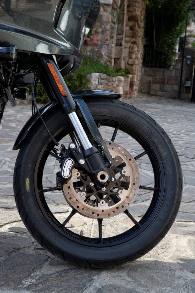 Die remmen, in het recente verleden vaak de achilleshiel van veel Harley-modellen, komen trouwens ook best goed voor de dag. Daarbij zijn de beide Low Riders de enige Softails met dubbele schijfremmen voor en die staan net even meer hun mannetje dan de remsystemen met enkele schijf op de andere modellen. Ook vaak en hard bergaf remmen leidt niet snel tot fading of een anderszins afnemend remgevoel. Wel vraagt het remhendel behoorlijk wat handkracht, al is het met ingang van dit modeljaar op alle Softails wel verstelbaar middels een handig stelwieltje.