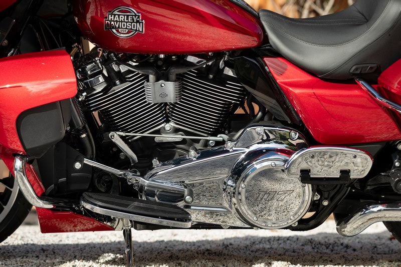 MOTOR lucht/vloeistofgekoelde 45° viertakt V-twin (Milwaukee-Eight VVT 117), met een balansas en een onderliggende ketting aangedreven nokkenas, vier kleppen per cilinder bediend via stoterstangen, variabele kleptiming, injectie, dry-sump smering, geregelde katalysator, dynamo 754 watt, accu 12V28 aH, zesversnellingsbak, natte anti-hop platenkoppeling, tandriemaandrijving.