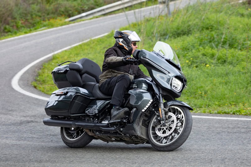 Opmerkelijk genoeg stuurt de zwaarste motorfiets het lichtst. Alhoewel het ook weer niet zo heel vreemd is. Op de zwaardere Road Glide is de kuip op het frame gemonteerd, terwijl de Batwing op de Street Glide op de voorvork zit. Daardoor gaat het insturen iets zwaarder en de Road Glide voelt ook net dat tikkie trefzekerder. En toch is het aangenamer sturen op de Street Glide omdat die over een lager stuur beschikt dan de semi-apehanger op de Road. Dat hoge stuur zorgt niet alleen voor een wat vertroebeld gevoel wat de voorkant precies aan het doen is, maar ook voor een iets passiever zithouding. Al kwalificeert een echte Grand American Tourder dat laatste waarschijnlijk als nóg meer ontspannen. Op de Street zit je rechter en actiever, en alleen al dat maakt het rijden gevoelsmatig allemaal wat speelser en natuurlijker. Waarschijnlijk hebben potentiële kopers vooraf een duidelijke voorkeur voor een van de twee modellen, maar ‘zwevende kiezers’ moeten echt beide modellen aan de tand voelen om te kijken waar hun voorkeur naar uitgaat.