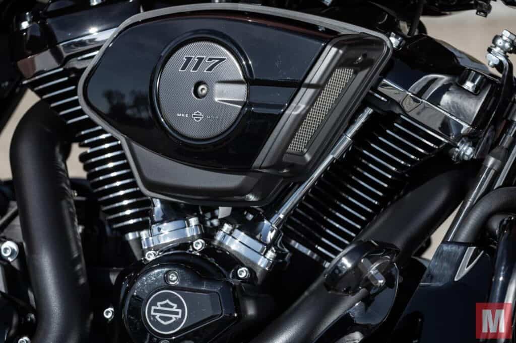 Ook die 117-twin zelf heeft trouwens een upgrade ondergaan. Zo is de layout van de cilinderkop herzien met ondermeer nieuwe verbrandingskamers en ovale inlaatpoorten. Daardoor is de compressie met 10,3:1 iets hoger, wat met name het benzineverbruik en het koppel bij lage toerentallen ten goede moet komen. Daarnaast is het inlaattraject herzien met onder andere een nieuw inlaatspruitstuk, nieuwe airbox en een groter gasklephuis (nu 58 mm in plaats van 55 mm), dat nu centrale tussen de cilinders is geplaatst en dichter bij de inlaatkleppen. En bovendien is dit de eerste V-twin van Harley-Davidson met een beduidend kleiner uitgevoerd koelsysteem voor de de uitlaatkleppen, en dat moet je in het zadel op hete dagen of bij het rijden van lage snelheden gaan merken aan minder warmteafgifte van het blok.