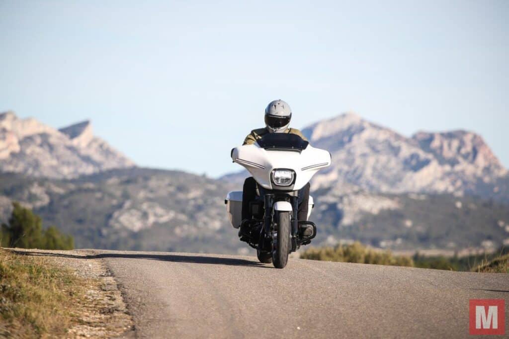 Met de nieuwe Street Glide 117 en Road Glide 117 schiet Harley-Davidson een nieuw tijdperk in. Het nieuwe design mag er wezen, het enorme TFT-display boordevol mogelijkheden pakt punten, maar het stralende middelpunt van het geheel is in beide gevallen die gemodificeerde Milwaukee Eight V-twin met zijn overdosis verwenkoppel en onder alle omstandigheden en in alle rijmodi uitstekende gasrepons. Net als dat blok nodigt ook het overwegend comfortabele rijwielgedeelte uit tot een vlotte quickstep, al vormen met name de grondspeling en de standaard banden uiteindelijk de beperkende factor. Welke je moet kiezen aangezien ze technisch nagenoeg identiek zijn? Dat is natuurlijk vooral een kwestie van een voorkeur voor de ene of de andere neus en daarnaast van armen hoog of laag als het om de zitpositie gaat.
