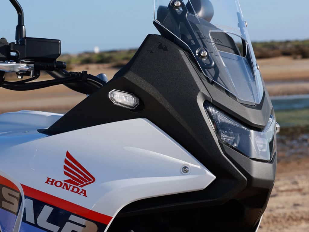 Hoewel het design maar heel lichtjes werd bijgepunt, komt de 2025-Transalp toch wel opvallend moderner voor de dag. En wel dankzij de nieuwe dubbele led-koplamp, die qua design zijn inspiratie duidelijk bij de Africa Twin haalt. In combinatie met de nieuwe ruit, met centrale luchtdoorlaat die turbulenties rond de helm moet tegengaan, oogt het frontje een heel stuk strakker en eleganter. Daarnaast zijn de verschillende mappings wat sterker gedefinieerd zodat het verschil in de vermogensstanden wat duidelijker merkbaar is. Ook de afstelling van het rijwielgedeelte is aangepast, waarbij zowel de in- als uitgaande demping van de niet instelbare Ø 43 upside-down Showa voorvork wat softer zijn geworden, terwijl monoschokdemper achter juist een iets stuggere setting kreeg. Dat zou moet resulteren. En het laatste nieuwtje betreft een nieuw, 5 inch TFT scherm met drie lay-out types en Honda RoadSync connectivity voor Android en iOs. Dat laatste maakt het onder meer mogelijk om een deel van het dashboard om te toveren tot turn-by-turn navigatie. Ook de bediening van het dashboard is licht aangepast, en wel met een nieuwe verlichte vierwegschakelaar.