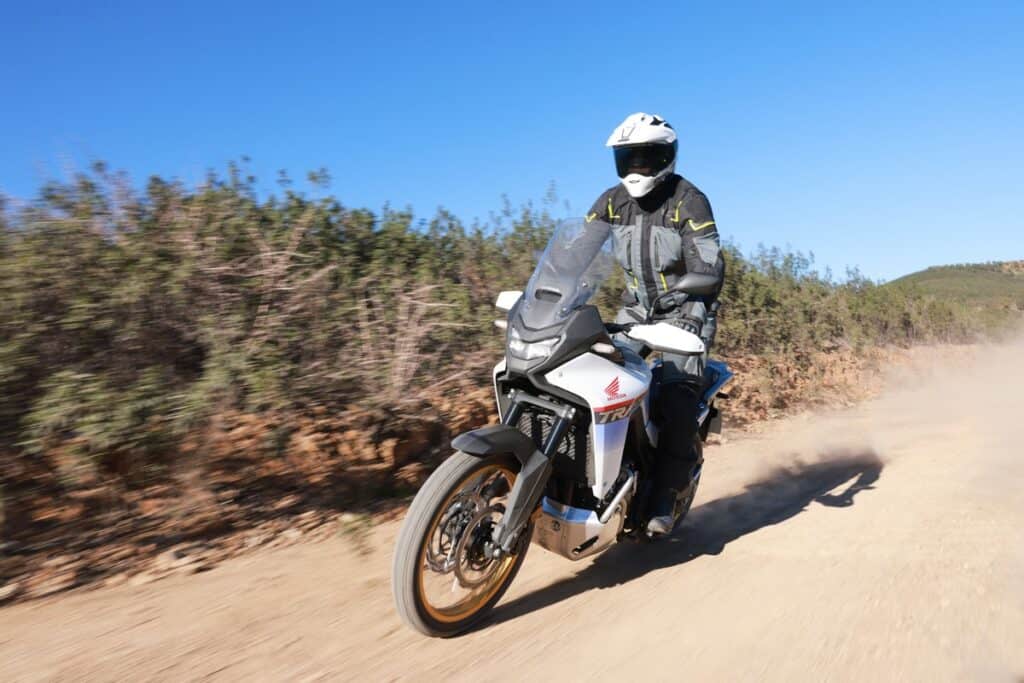 In de middag gaat het over op de Transalp, die onder meer is voorzien van de optionele quickshifter (€ 299,99), een optie die ik persoonlijk overigens direct zou aanvinken op het bestelformulier. Dashboard, elektronica en bediening ervan zijn bijna identiek aan die op de NC, met dien verschil dat de Transalp nog een extra Gravel-modus biedt, evenals een offroad-stand van het ABS, waarbij het systeem achter is uitgeschakeld. De zon staat hoog aan de hemel inmiddels en de temperatuur is meer dan aangenaam. We beginnen direct maar in Sport, want voor ons ligt dezelfde asfaltachtbaan als vanochtend (de N397 van Alcaria do Cume naar Cachopo voor de liefhebbers), maar dan in omgekeerde rijrichting. De zit op de Transalp is in vergelijking met de NC wat meer in dan op de motor, en uiterst comfortabel. Wat de Transalp en NC motorisch gemeen hebben is de subtiele gasaanname in alle powermodi, het blokkarakter van beide verschilt echter als dag en nacht. De met 92 paarden duidelijk sterkere Transalp is veel hoogtoeriger. Niet dat er onderin geen fut in zit, maar zo daadkrachtig als de NC vanuit de startblokken komt, is de XL750 zeker niet gegeven. Die krijgt er vanaf zo’n vijfduizend toeren pas echt zin in en houdt dat enthousiasme vast tot zo’n negenduizend toeren, een toerental waarbij het licht op de NC al lang en breed uit is.