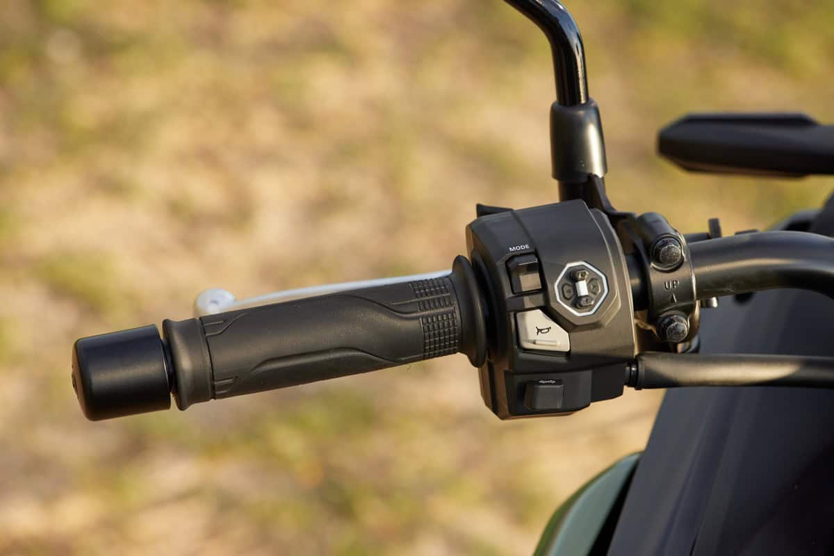 Dat doe je dan weer met de nieuwe, verlichte vierwegschakelaar links op het stuur, die we ook al van onder meer de CB650R en nu dus de Transalp kennen. Waar op bijvoorbeeld de NT1100 en Africa Twin de bediening qua logica nog wat te wensen over laat, is dat op de NC gelukkig een heel ander verhaal. Mega intuïtief is een groot woord, maar met een beetje gevoel voor logica is de menustructuur makkelijk te doorgronden. En wanneer je deze onder de knie hebt (na een paar minuten) fiets je er uiterst snel doorheen. Op andere vlakken zie je dan weer wel dat de (kost)prijs wel degelijk één van de ontwikkelingspeerpunten is. Zo is de behoorlijk basic vering achter enkel qua veervoorspanning instelbaar, en dat ook nog met een haaksleutel op een niet héél erg makkelijk bereikbare plaats. Ook jammer is het niet instelbare ruitje, al staat er wel een grotere, verstelbare variant à raison de € 428,46 in de uitgebreide accessoireslijst van de NC.