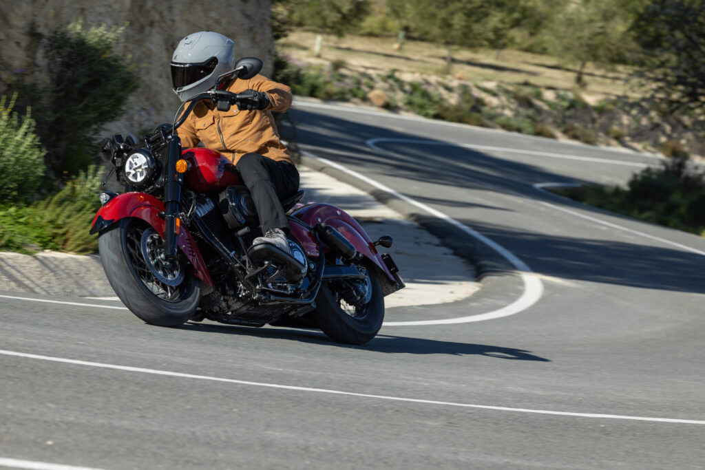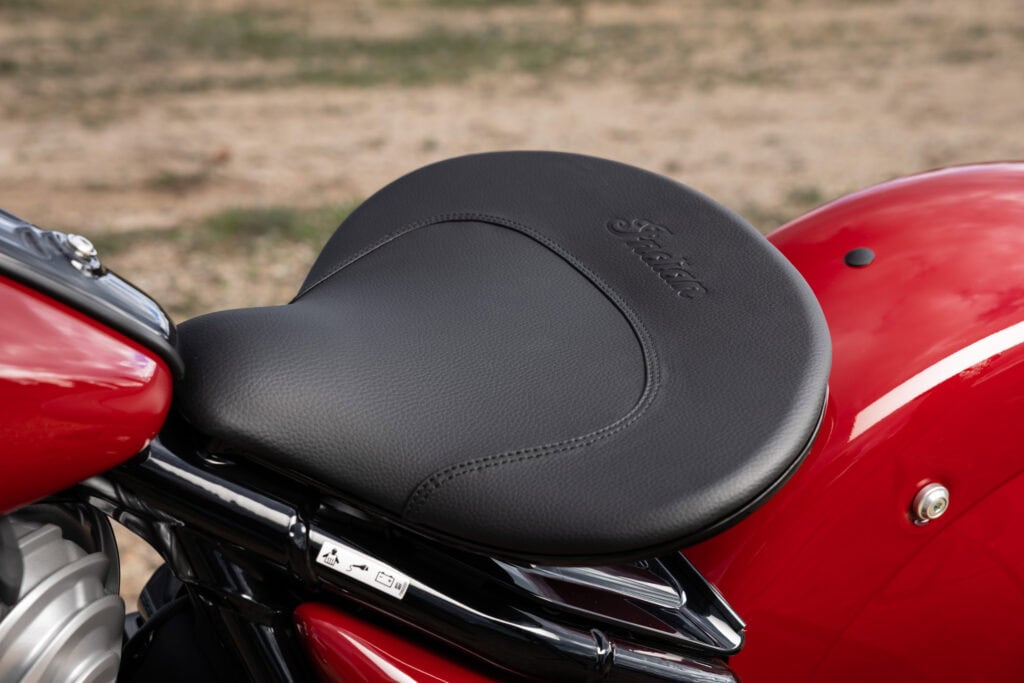 Tijd om op te stappen voor een kennismakingsrit met de Chief Vintage door het achterland van het Spaanse Benidorm. Het zadel vangt je achterste op een lage 686 millimeter op, kenmerkend natuurlijk voor dit genre, maar de Vintage heeft nog niet eens de laagste zithoogte van de Chief-lijn. Het zadel zelf oogt royaal en zit comfortabel, maar biedt niet heel veel ruimte om te verzitten, wat de zit zelf een tikje passief maakt. Overigens zijn er optioneel diverse vervangende zadels leverbaar en ook duozadels voor als je er toch met z’n tweetjes op uit wilt trekken, al gebiedt de eerlijkheid te zeggen dat die laatste categorie wel wat afbreuk doen aan het fraaie lijnenspel van de Vintage.