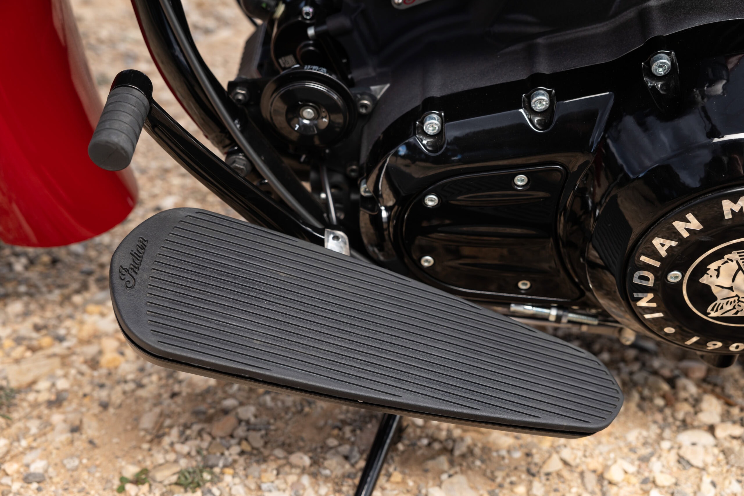 Het stuur van de Chief Vintage komt je in het zadel haast wulps tegemoet. De voeten staan op flinke treeplanken, waarbij het schakel- en achterrempedaal vrij ver naar voren zijn geplaatst. Die treeplanken, of ‘floorboards’ zoals de Amerikanen zeggen, sluiten natuurlijk perfect aan bij de looks van de Vintage, maar als je liever conventionele voetsteunen hebt, dan kan dat ook. Deze zitten in de zeer uitgebreide accessoirelijn, evenals de optie voor hak/teen-schakeling, wat ik persoonlijk de beste optie vind bij treeplanken.