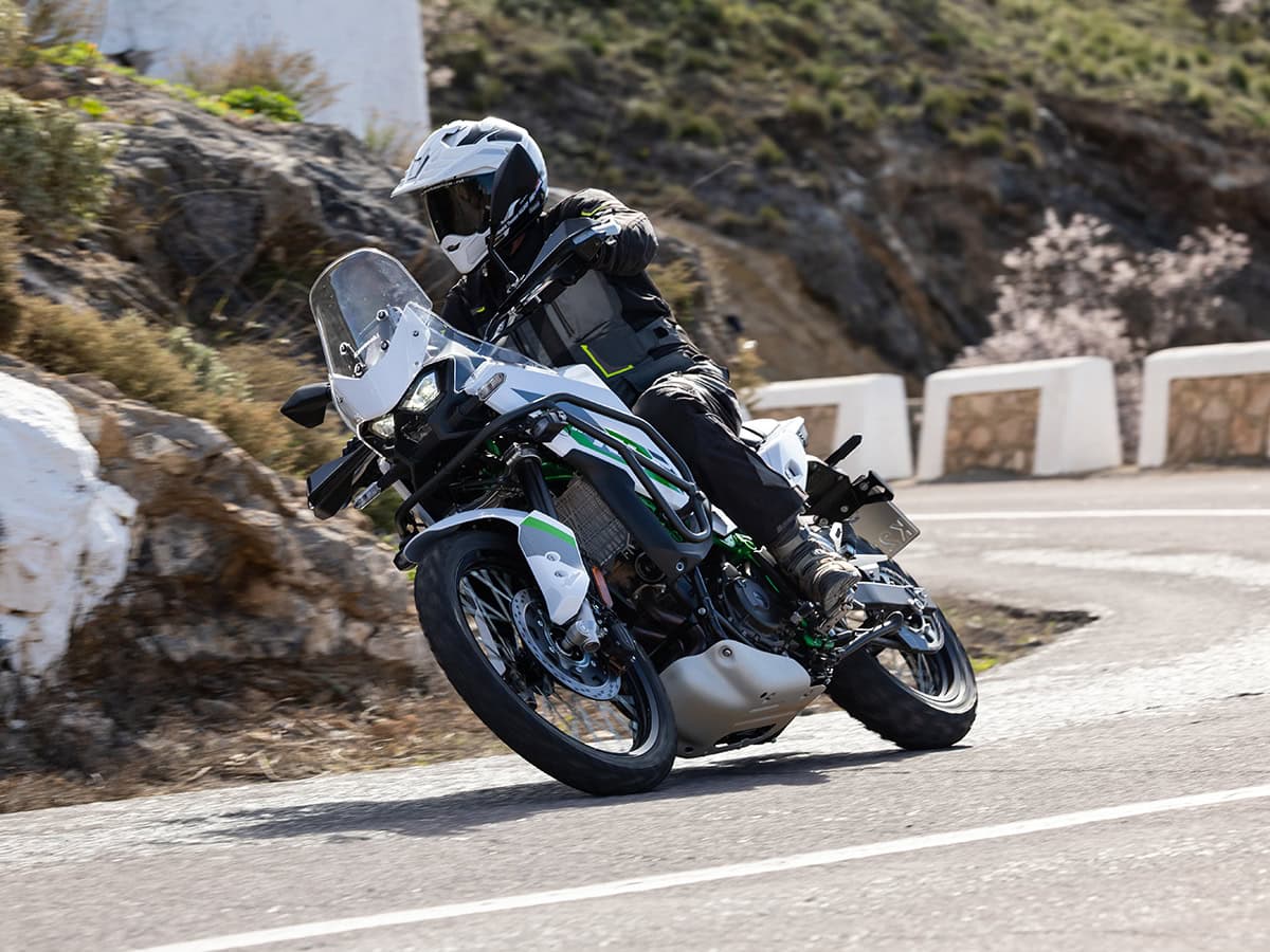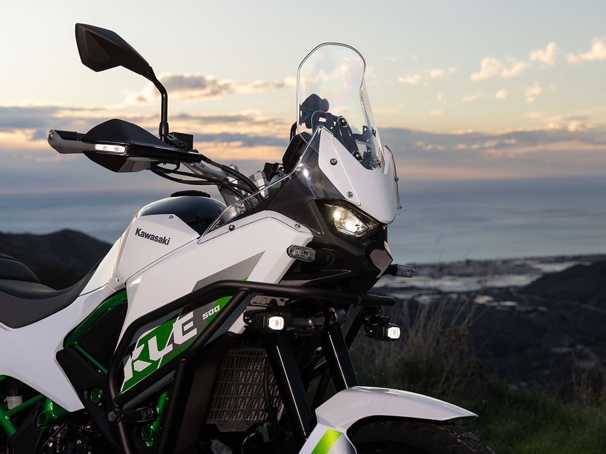 Motorisch bijvoorbeeld vertrouwt de KLE wederom op een tweecilinder-lijnmotor, meer precies de bekende 451cc-twin die ook al in de Z en Ninja 500 dienst doet. Iets minder groot dan het 498cc-blok van de eerste generaties, maar met 45 pk wel net zoveel paarden aan boord, terwijl het maximale koppel met 43,6 newtonmeter zelfs nog een fractie hoger ligt. Voor transplantatie in de KLE kreeg de 500 ten opzichte van het blok in de Z en Ninja wel een licht gewijzigde tuning getrimd op net wat meer spierballenvertoon in het lagere en midden toerengebied.