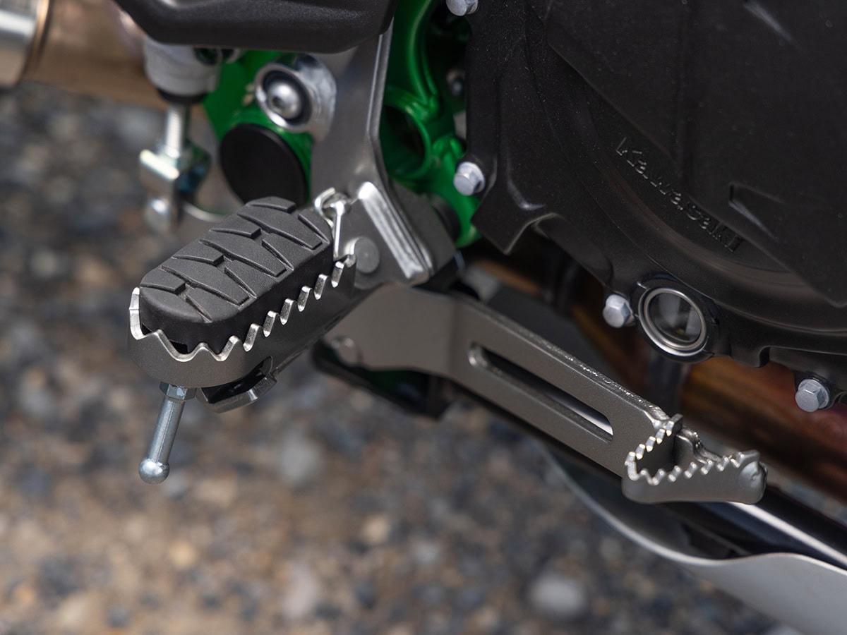 Op de weg doet de Kawa het dus goed, maar hoe zit het met ernaast? Het 21 inch voorwiel belooft immers ook de nodige offroad aspiraties. Naast een offroadpiste van zeventien kilometer duiken we met de twin ook nog de voor publiek volledig afgesloten Tabernas woestijn in, waar onder meer de Indiana Jones-film Raiders of the Lost Ark deels werd opgenomen. Eerst het ABS maar uitschakelen, en wel middels een bijzonder praktische aparte knop op het stuur. Ter info, dat geschiedt middels eerst een korte en vervolgens wat langere druk op de knop, zodat je niet per ongeluk tijdens het rijden de boel lam legt. En nu we het toch over de remmen hebben: de enkele Ø 300 mm remschijf voor is goed te doseren, vertraagt adequaat, maar is niet overdreven gretig bij het eerste aanleggen, wat zeker offroad heel prettig is. De achterrem laat zich daarnaast ook van een energieke kant zien, waardoor je de achterzijde op het onverhard mooi de bocht in kunt sturen, wat het spelletje nog meer onderhoudend maakt.