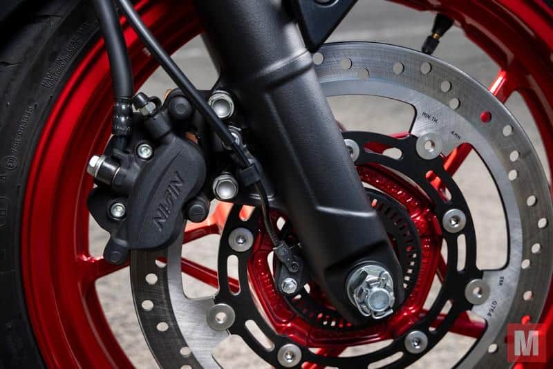 RIJWIELGEDEELTE: stalen vakwerkframe, telescoop-voorvork Ø 41mm, stalen swingarm met monoschokdemper, veervoorspanning instelbaar, enkele schijfrem voor Ø 310 mm met dubbelzuiger-remklauw, schijfrem achter Ø 220 mm met dubbelzuiger-remklauw, ABS.