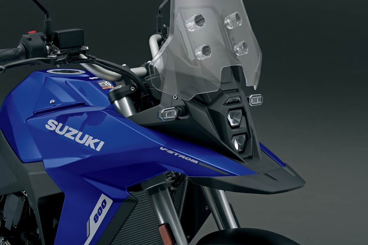 Wat niemand uit de technische specificaties haalt is de flink gewijzigde uitstraling van de V-Strom 800. Omdat hij een serieus stuk lager bij de grond staat blijft er een stuk minder overeind van de ruige allroad-uitstraling van de DE. Het onverschrokken wereldreisimago maakt plaats voor een uitstraling die goed bij een Nederlander past: ‘doe maar gewoon, dan doe je al gek genoeg’. De keerzijde daarvan: een geparkeerde V-Strom 800 jaagt je niet direct het hoofd op hol. Zelfs niet als Suzuki een oude bekende van stal haalt: de ‘duck’ is terug. Met legendarische machines als de TL1000R zat de ducktail nog achterop, de V-Strom 800 heeft voorop een eendensnavel.