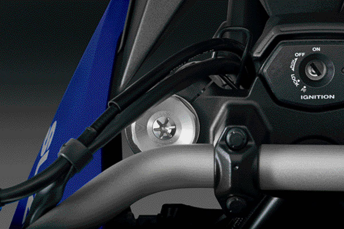 Het in drie standen verstelbare windscherm dient vanzelfsprekend hetzelfde doel. Alleen houdt de bescherming in de praktijk niet over. Het ruitje is weliswaar flink groter dan op de DE, maar als het in de laagste positie staat beukt de turbulente lucht vol op je gezicht. Oké er zat een verzachtende omstandigheid op mijn hoofd – een allroadhelm met klep pakt nu eenmaal wat meer wind – maar dan nog moet het beter kunnen. Het ruitje is drievoudig instelbaar, maar daarvoor heb je wel een schroevendraaier nodig. Opmerkelijk want Suzuki gebruikt op andere modellen geweldig simpel te bedienen en tegelijk vernuftige verstelmechanismes. Niets zo persoonlijks als een windscherm, maar vermoedelijk gaan accessoirefabrikanten op dit vlak wel een paar euro’s verdienen.