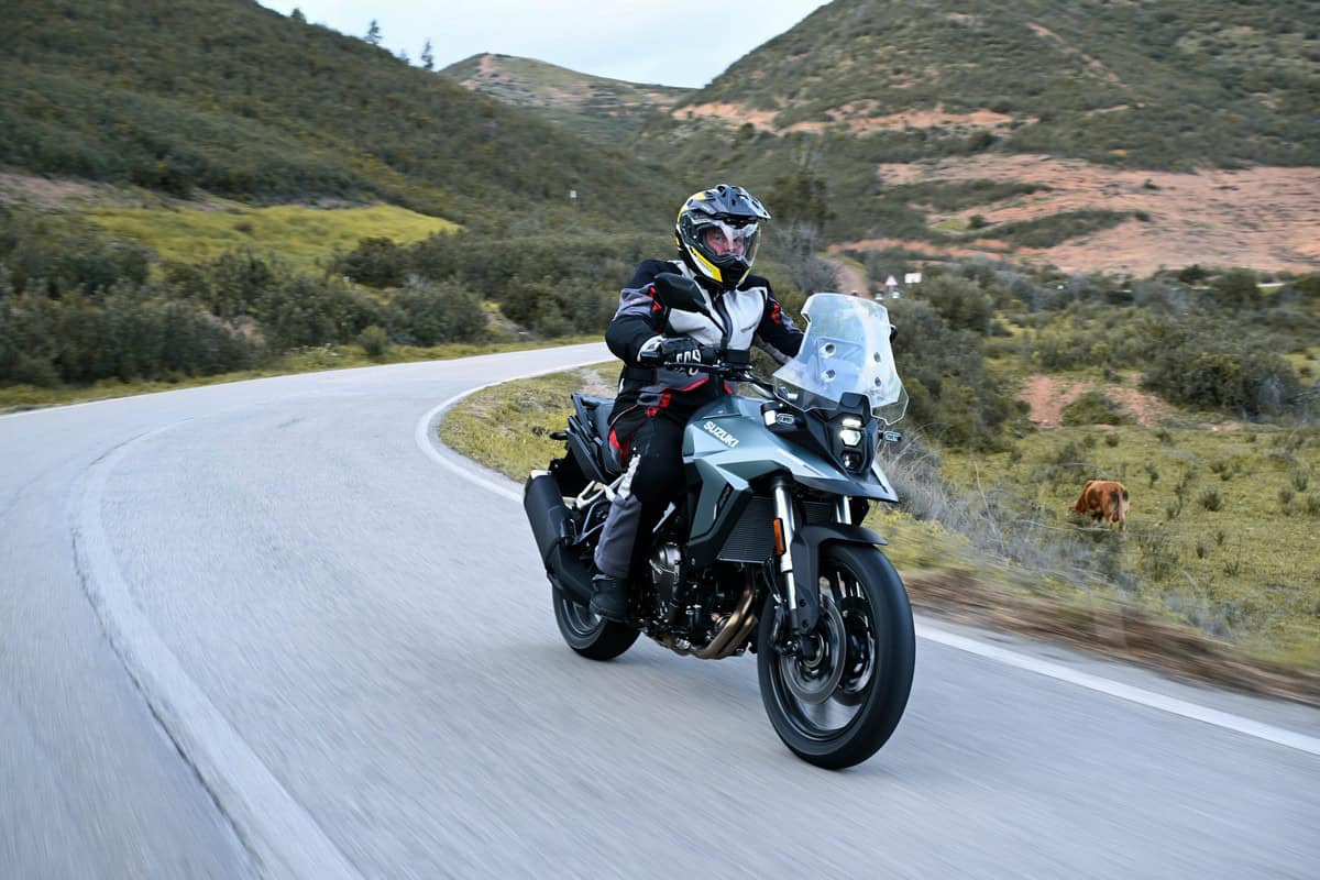 De injectie loopt al net zo in de pas met de goede manieren van het blok. Het vertaalt jouw gevoel precies naar de juiste hoeveelheid brandstof en het blok reageert daar krachtig en resoluut op. ‘Slechts’ 83 pk is een understatement van jewelste. Op de prachtige kronkelende stuurwegen van de Algarve kom je werkelijk geen moment vermogen tekort. Iedere bocht komt de V-Strom krachtig uit, ook als je een keer zit te slapen en een versnelling te hoog zit. Knappe jongen op een zwaardere motorfiets die je bijhoudt op het parcours dat Suzuki ons voorschotelde. Dat is niet nieuws. Sterker nog: Suzuki flikte hetzelfde geintje exact een kwart eeuw geleden met de SV650. Die is tot op de dag van vandaag te koop en dat belooft een mooie toekomst voor de 800.