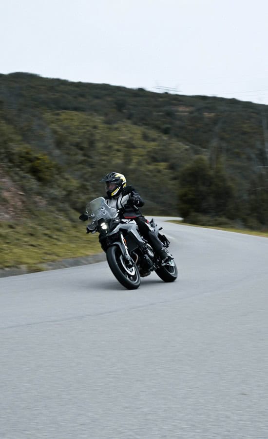 Ach laten we eerlijk zijn: er is weinig wat gewenning vraagt op de reeks heerlijke middenklassers van Suzuki die allemaal om het nieuwe tweecilinderblok draaien. Wat is die staande twin toch een briljant apparaat. Eentje die zich net zo makkelijk bewijst in een allroad, naked, sporttoer als in deze motorfiets. Nadelen blijven beperkt tot het produceren van wat vibraties in de voetsteunen in de hogere toerentallen, maar het middengebied is zo goed gevuld dat je daar amper iets te zoeken hebt. Het is fijn dat Suzuki ook op dit model het bekende 5” TFT-scherm gebruikt zodat je de (lage) toerentallen ook daadwerkelijk kunt aflezen. Daarbij maakt het niet of de motorfiets je zijn dag- of nachtmodus voorzet.