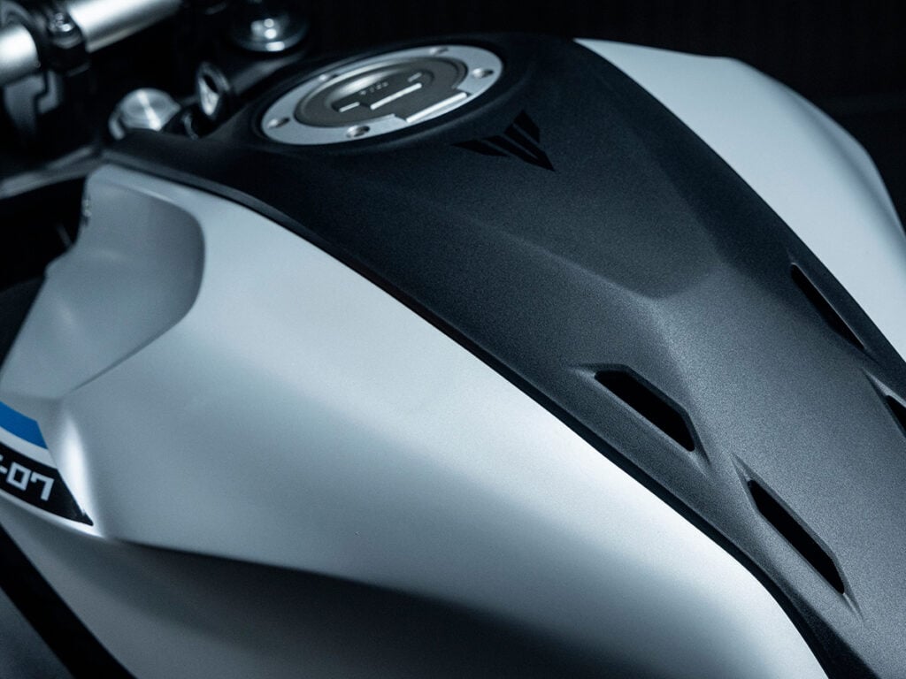 En gewichtsbesparing was een belangrijk aspect bij de ontwikkeling van de nieuwe MT-07, aangezien de nieuwe ’07’ het eerste model is van het CP2-platform dat is voorzien van een ride-by-wire-systeem, ofwel Yamaha Chip Controlled Throttle (YCC-T), en dat brengt extra gewicht mee. Hetzelfde geldt voor de noodzakelijke aanpassingen om het CP2-blok de Euro5+-horde te laten nemen. Dus waar mogelijk zijn er grammen geschaafd en bespaard, voor de cijferfetisjisten: 600 gram op het bodywork, 400 gram op de bovenste kroonplaat en bijna een halve kilo onafgeveerd gewicht op de wielen. Onder de streep heeft Yamaha het rijklaar gewicht zelfs nog met een kilo weten te verlagen vergeleken met het voorgaande model en stokt de weegschaal bij slechts 183 kilo.