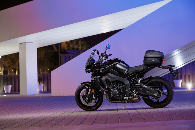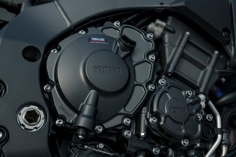 De sleutel daartoe ligt dus in het koppel en meer precies in het koppel dat de MT-10 serveert in het toerengebied tussen de 4.000 en 8.000 toeren, inderdaad het gebied waarin je bij normaal straatgebruik het meest vertoeft. Om juist daar optimale punch te leveren is de draaiende massa vergeleken met de Crossplane-viercilinder van de R1, waar de MT-10 zijn blok aan ontleent, met liefst 43,5 procent verhoogd. En in dat licht zijn ook de titanium drijfstangen van de R1 vervangen door stalen exemplaren. Kortom, ingrepen die het maximum toerental en het topvermogen beperken, maar het zo belangrijke middengebied juist versterken. Verder zijn het titanium uitlaatsysteem, dat nu vier katalysatoren heeft, en de airbox vernieuwd. Dat laatste moest vooral ook de geluidsbeleving van de MT-10 ten goede komen, maar daarover later meer.