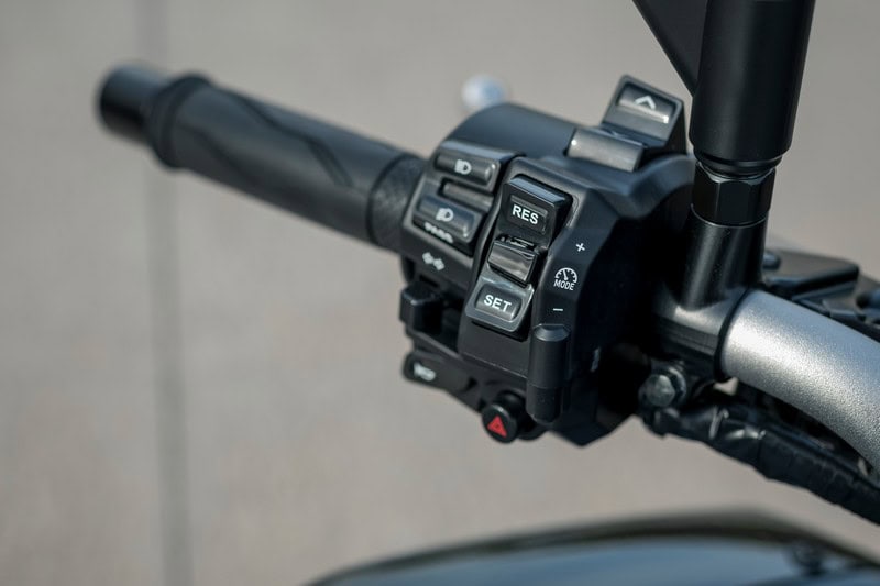 Dankzij een 6-assige IMU werken ABS en tractiecontrole van de MT-10 nu ook hellingshoekafhankelijk en is een quickshifter met blipperfunctie om zonder gebruik van de koppeling op- en terug te schakelen nu standaard. Overigens zaken waarmee de MT-09 de MT-10 afgelopen modeljaar al voorbij gestreefd was. Maar nu is de ’10’ ook wat elektronica betreft weer de top van de MT-voedselketen, want daarnaast zijn uitschakelbare slide- en lift-control nog twee nieuwe elektronicafoefjes van de MT, die verder ook nog een in twee standen instelbare motorrem heeft. Alle hulpsystemen, behalve het ABS, zijn samen met de vier power modi gekoppeld aan de vier verschillende rijmodi (A, B, C en D) die de MT-10 heeft. In de eerste drie modi is het volledige vermogen beschikbaar en varieert de gasrepons en in de vierde modus, de regenstand, wordt dat vermogen geknepen tot zo’n 100 pk. Daarnaast is er nog een vijfde, vrij programmeerbare modus, waarin je alle parameters naar eigen smaak kunt afstellen. Alle instellingen lees je af op een nieuw, van de R1 afgeleid 4,2 inch TFT-scherm, dat overigens geen smartphone-connectiviteit kent. Cruise control en een programmeerbare snelheidsbegrenzer toppen het omvangrijke elektronicapakket af.