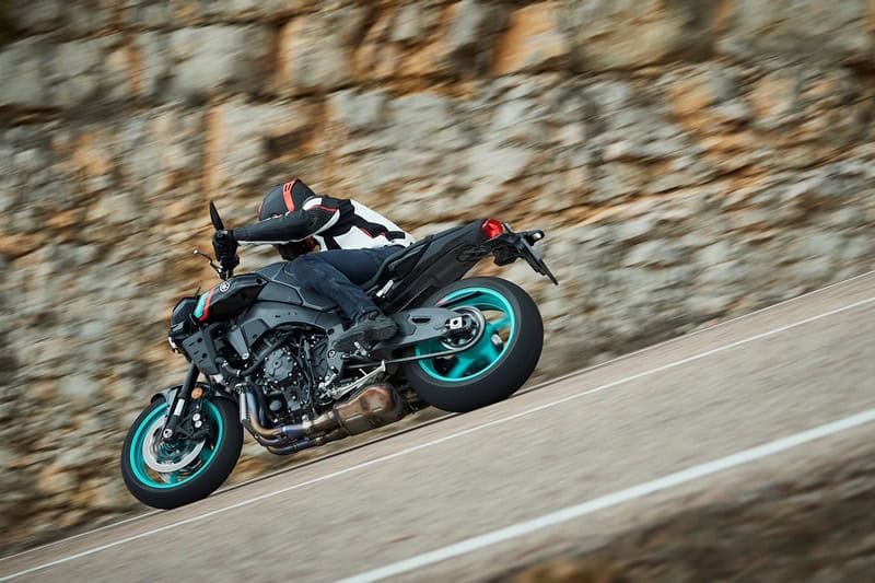 Aan vering en frame, beide eveneens wortelend in de R1, was weinig mis, dus dat lieten de Japanners voor deze update ongemoeid, al is het stalen subframe wel vernieuwd en is de veerafstelling licht gewijzigd. Interessanter is de nieuwe radiale rempomp van Brembo, die de nu de bekende vierzuiger-remklauwen aanstuurt. Deze vervangt de conventionele axiale pomp van het voorgaande model en moet met name voor een duidelijker en meer consistenter drukpunt zorgen. Staalomvlochten remleidingen blijven trouwens voorbehouden aan de MT-10 SP.