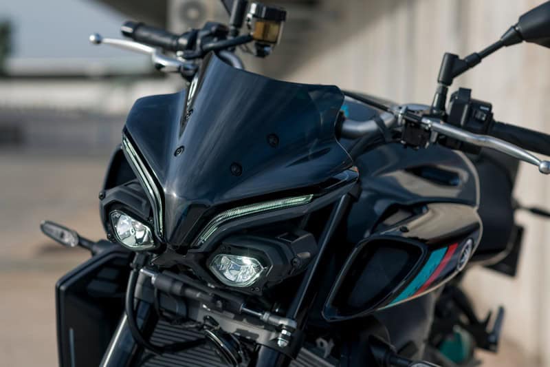 Veel finetuning dus en dat geldt in feite ook voor de looks van de nieuwe MT-10. Die zijn nog steeds onmiskenbaar die van de MT-10, maar het frontje oogt onder andere door de nieuwe Y- of met een beetje fantasie stemvorkachtige led-dagrijverlichting boven de twee nu gescheiden led-koplampen net even wat luchtiger en minder Transformer-achtig. Dat Y-design zie je trouwens ook terug in het nieuwe led-achterlicht in de nu iets slanker getekende achterpartij, de kracht van herhaling….