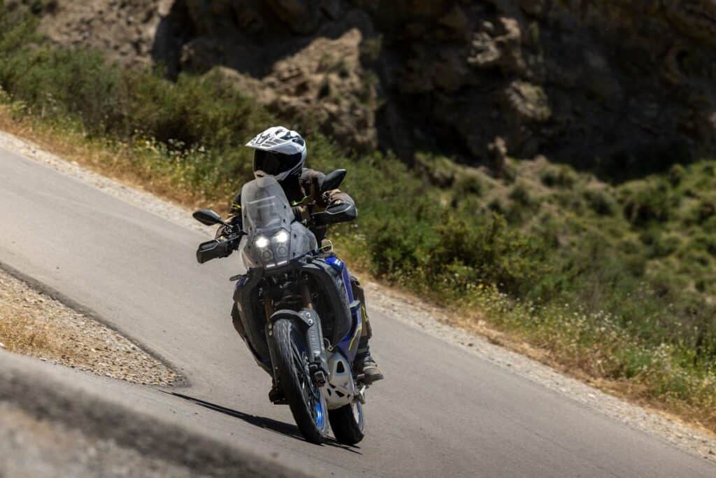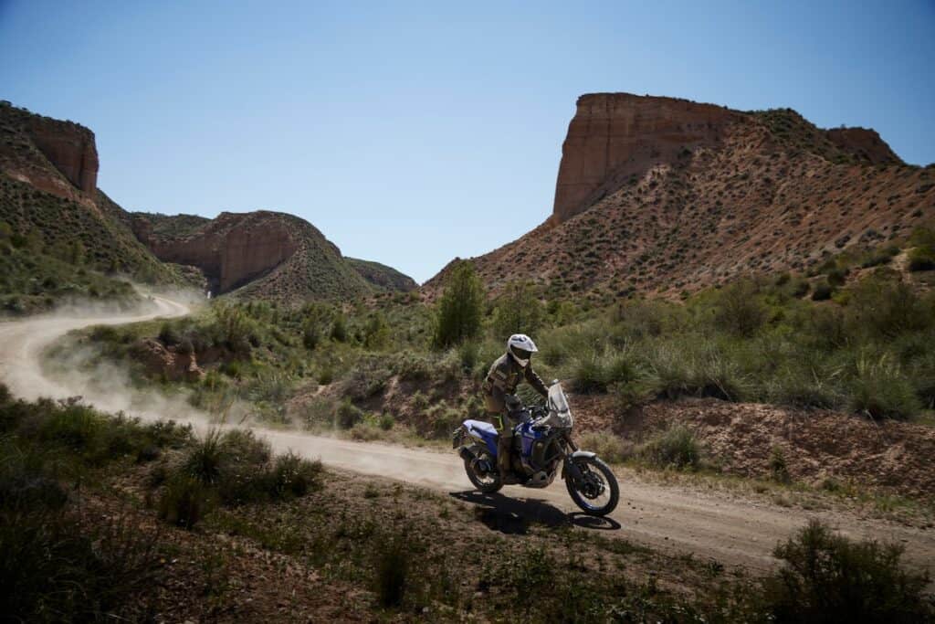 Voor de eerste kennismaking met de World Raid in Zuid-Spanje trekt Yamaha de registers behoorlijk open. Een route van ruim 340 kilometer staat er vandaag op de planning, waarvan ruim de helft offroad. Niet alleen brede gravelwegen, maar ook meer extremer werk door gebieden die voor gewone auto’s onbereikbaar zijn. En dat alles bij een temperatuur die volgende de meteorologen kan oplopen tot iets over de dertig graden. Dat de gemoederen verhit zullen worden, lijkt dus eerder feit dan vraag. Gelukkig voeren de eerste zestig kilometer over het asfalt, wat mooi de gelegenheid biedt om er even in te komen.