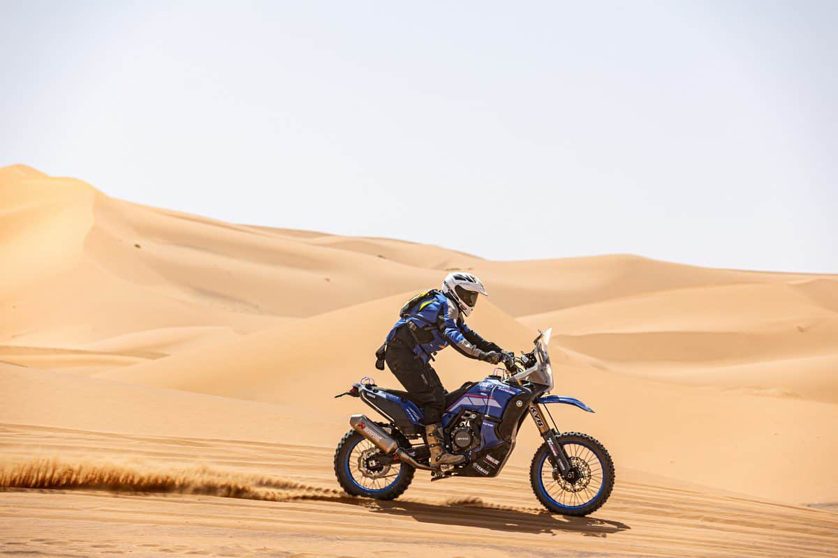 Op papier althans, of de World Raid GYTR ook in de praktijk goed voor de dag komt, gaan we proefondervindelijk vaststellen. Daarvoor heeft Ténéré Yamaha Rally Team principal en ex-endurocoureur Marc Bourgeois een tweedaagse rit rond het Marokkaanse Erfoud uitgezet. Daarbij fungeren bepaald niet de minste namen als voor- en bijrijders: Alessandro Botturi en Pol Tarrés zijn van de partij, terwijl de twee groepen worden geleid door respectievelijk Jordi Arcarons (17-voudig Dakar deelnemer, zes podiums) en Stéphane Peterhansel (14-voudig Dakar-winnaar, waarvan drie keer op de motor). Het vermoeden rijst daarom dat er meer op de planning staat dan enkel wat goed begaanbare gravelpaden. Wat later ook wel blijkt…