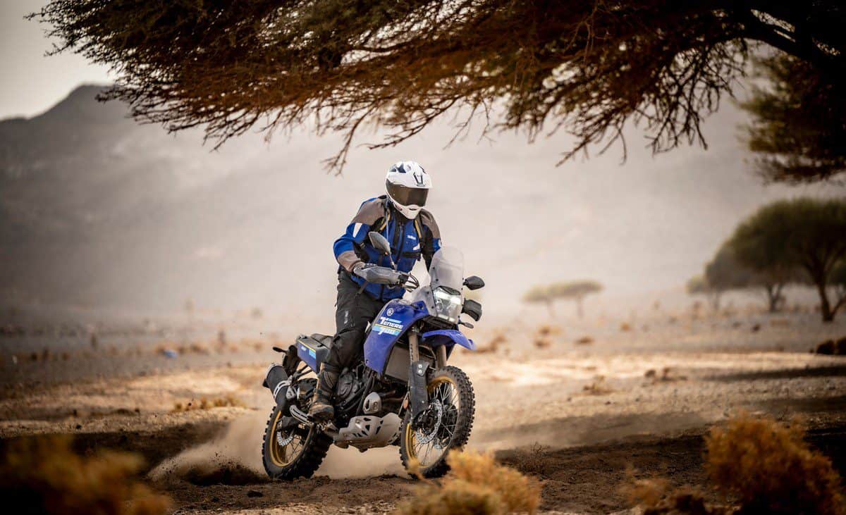 Goed gereedschap is het halve werk, en in dat licht beschenen komen we in ieder geval goed beslagen ten ijs voor een tweedaagse test in de Marokkaanse woestijn en duinen. De standaard Ténéré 700 is al behoorlijk offroadwaardig met onder meer zijn lange veerwegen en 50/50 Pirelli Scorpion STR-banden. Tocht herbergt de Japanse Adventure-lijn nog vijf additionele modellen, elk met een eigen vakgebied. Zo heeft de Explore het accent iets meer op het asfalt liggen, kun je met de World Raid en World Rally (beide met de dubbele, 23 liter tellende tanks) aanzienlijke afstanden afleggen en legt de nieuwe Extreme op papier de beste offroadcapaciteiten aan de dag.