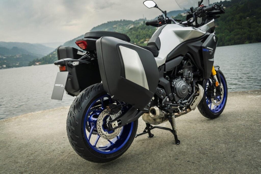 Nu we het bruggetje naar die GT-versie hebben geslagen: deze meer toeristisch aangeklede variant ondermeer een hogere en bredere ruit (90 millimeter hoger dan voorheen), twee van de Tracer 9 afkomstige zijkoffers met elk 30 liter inhoud, een handige draaiknop om de veervoorspanning achter snel en makkelijk te kunnen verstellen en een o zo handige middenbok. Ook in de categorie handig en vooral fijn: handvatverwarming met tien regelniveaus. Daar hangt uiteraard een ander prijskaartje aan, want de Tracer 7 GT kost € 13.199,-, precies € 1.600 meer dan de € 11.599,- kostende standaard uitvoering.