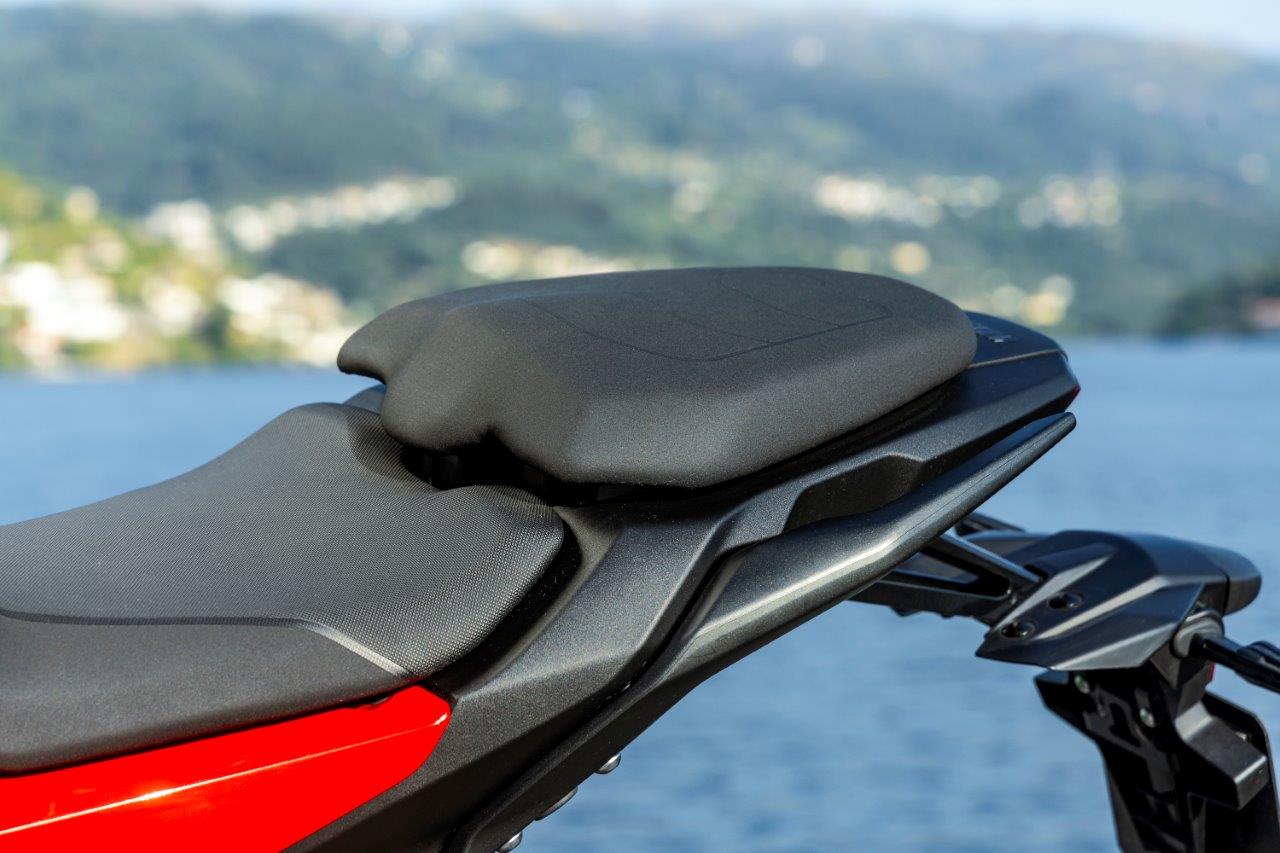 Eenmaal in het zadel is daar meteen het zo vertrouwde Tracer-gevoel, al is de zithouding wel iets anders. Het stuur is namelijk 50 millimeter breder en 30 millimeter hoger. Bovendien is het zadel niet langer eendelig, maar tweedelig en heeft een passagier 40 millimeter meer plek. Nu we het meetlint toch in handen hebben: de zit op de Tracer 7 is met 830 millimeter 5 millimeter lager dan voorheen en net als voorheen kan het zadel redelijk eenvoudig in een hogere stand worden gezet (850 mm). Die mogelijkheid heeft ook de GT-uitvoering van de Tracer 7, al verschillen de beide zithoogte-opties voor deze uitvoering wel met 845 en 865 millimeter. Dat is overigens in beide gevallen 10 millimeter hoger dan bij het 2024-model.